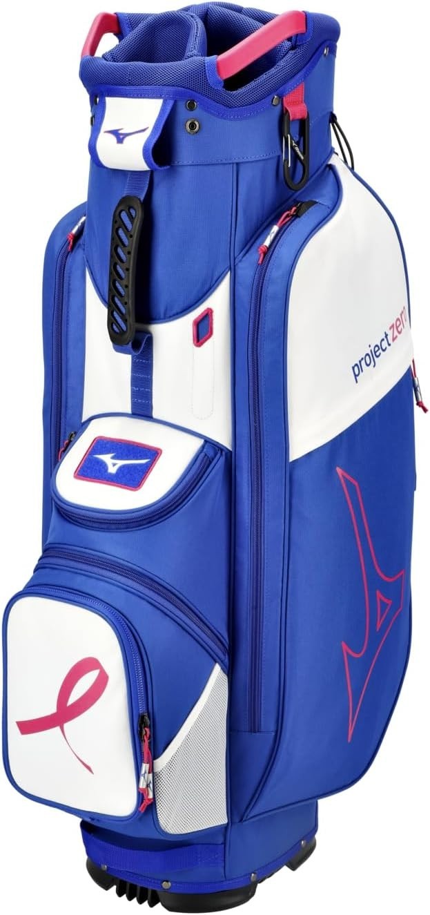 We are a reputable golf company that has been in business in St. Louis, Missouri since 1975. We have been doing this for 40 years because we do things right the first time. WE HAVE THE FASTEST SHIPPING ON EBAY! Don't believe us? Check out our Feedback. If you have questions, please feel free to ask. As always, thank you for looking. Mizuno Project Zero LW-C Cart Golf Bag COLOR: Blue/Pink STYLE: Cart Bag DIVIDERS: 7-Way Divider CONDITION: New w/ Tags - See Pics (10/10) RAIN HOOD: Included We have partnered with BCRF for five years and counting to aid them in their efforts to turn 1 in 8 women diagnosed with breast cancer into 0 in 8. The LW-C is here to break the reputation of cart bags as being bulky, heavy, and cluttered. Large pockets for apparel or bigger items, a cooler pocket for hydration, and a 7-way top cuff are just a few features that this lightweight cart bag still has, but in a smaller, more efficient design. 7-Way Top Cuff with 3 Full Length Dividers Dual Shoulder Straps with Quick Release Clips: Can be easily removed and stored in the full length apparel pocket so straps don't get in the way when riding Single Shoulder Strap with Adjustment Point Full Length Apparel Pockets Large Cooler Pocket with Drain Hole Fleece Lined Valuables Pocket Padded Grab Handle on Body of Bag Removable Ball Pocket Panel: Easily zips off and back on for customization or embroidery Quick Access Mesh Pockets Push Cart Notch Molded into Bottom Cuff: Enables an extra level of stability when used on a push cart Integrated Pen/Market Slot Carabiner Accessory Clip: A metal loop with a spring loaded closure to quickly connect accessories Loop Velcro Patch: Provides easy accessibility for gloves, or offers a perfect place to display morale patches for an extra level of personalization Elastic Strip for Tees Matching Rainhood: Matching rainhood ensures clubs stay dry in wet weather Umbrella Holder