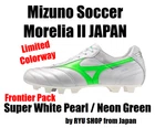 Mizuno Soccer Cleats Morelia 2 JAPAN P1GA250137 Color : Super White Pearl / Neon Green Frontier Pack Limited Colorway Product Details: Model: Mizuno Morelia 2 JAPAN Condition: Brand New Please Note: ①Fast Shipping: Your order will be shipped promptly upon payment confirmation, ensuring you receive your cleats as swiftly as possible. ②International Shipping: Soccer enthusiasts worldwide can purchase these cleats. Please note that any customs duties or other applicable fees mandated by your country's regulations are separate from the purchase price and are the buyer's responsibility. ③Please be aware that we sell shoes in our physical stores as well. Therefore, some sizes may be out of stock. We apologize for any inconvenience, but we will cancel your order if the size you ordered is out of stock. Features: The new Morelia II Japan is a premium football boot that combines the classic comfort and performance of the original Morelia with a modern fit and feel. The Morelia II Japan features a redesigned last that provides a more secure and supportive fit. The new last is also more flexible, making it easier to move naturally on the pitch. The upper of the Morelia II Japan is made from premium kangaroo leather that provides a soft and responsive touch. The leather is also stitched by hand for a more durable and comfortable fit. Other features of the Morelia II Japan include a new insole for added comfort and support, and a custom lace with the Morelia logo. The Morelia II Japan is the perfect choice for players who demand the best in comfort, performance, and quality. Here are some additional details about the Morelia II Japan: Made in Japan : The Morelia II Japan is made entirely in Japan, using the finest materials and craftsmanship. Engineered Fit Last : The new last is designed to provide a more secure and supportive fit, while also being more flexible. Kangaroo Leather Upper : The upper is made from premium kangaroo leather that provides a soft and responsive touch. New Insole : The new insole provides added comfort and support. Custom Lace : The custom lace features the Morelia logo. *** If the size you want cannot be selected because it is out of stock or for some other reason, please feel free to message us. We will check if we can distribute the size you want and get back to you. By placing an order for this item, the buyer agrees to all of our sales, shipping, return, and other store policies. Please review our full Store Policy details on our Store Page.