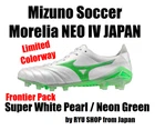 Mizuno Soccer Cleats Morelia Neo IV JAPAN P1GA253037 Color : Super White Pearl / Neon Green Frontier Pack Limited Colorway Description: Experience the latest in soccer innovation with the Mizuno Morelia Neo IV Soccer Cleats. Introduced in July 2023, these cleats combine cutting-edge technology with Mizuno's renowned craftsmanship for an unparalleled playing experience. Elevate your control, speed, and agility on the field with this ultimate choice for high-performance players. Product Details: Model: Mizuno Morelia Neo IV Condition: Brand New Please Note: ①Fast Shipping: Your order will be shipped promptly upon payment confirmation, ensuring you receive your cleats as swiftly as possible. ②International Shipping: Soccer enthusiasts worldwide can purchase these cleats. Please note that any customs duties or other applicable fees mandated by your country's regulations are separate from the purchase price and are the buyer's responsibility. ③Please be aware that we sell shoes in our physical stores as well. Therefore, some sizes may be out of stock. We apologize for any inconvenience, but we will cancel your order if the size you ordered is out of stock. Features: Mizuno's cutting-edge technology for enhanced ball control and traction Lightweight design for increased agility and speed on the field Unmatched comfort for reduced foot fatigue during intense matches Crafted by Mizuno, a trusted Japanese brand renowned for producing high-quality soccer gear Step onto the field with confidence, knowing you're equipped with the latest advancements in soccer footwear. Don't miss this opportunity to elevate your game to new heights. If you have any questions or require assistance, please feel free to contact us. Please note that the images provided are for illustrative purposes only, and the actual product design may vary. Order now and be among the first to experience the game-changing performance of the Morelia Neo IV, with fast shipping ensuring you receive your cleats promptly. *** If the size you want cannot be selected because it is out of stock or for some other reason, please feel free to message us. We will check if we can distribute the size you want and get back to you. By placing an order for this item, the buyer agrees to all of our sales, shipping, return, and other store policies. Please review our full Store Policy details on our Store Page.