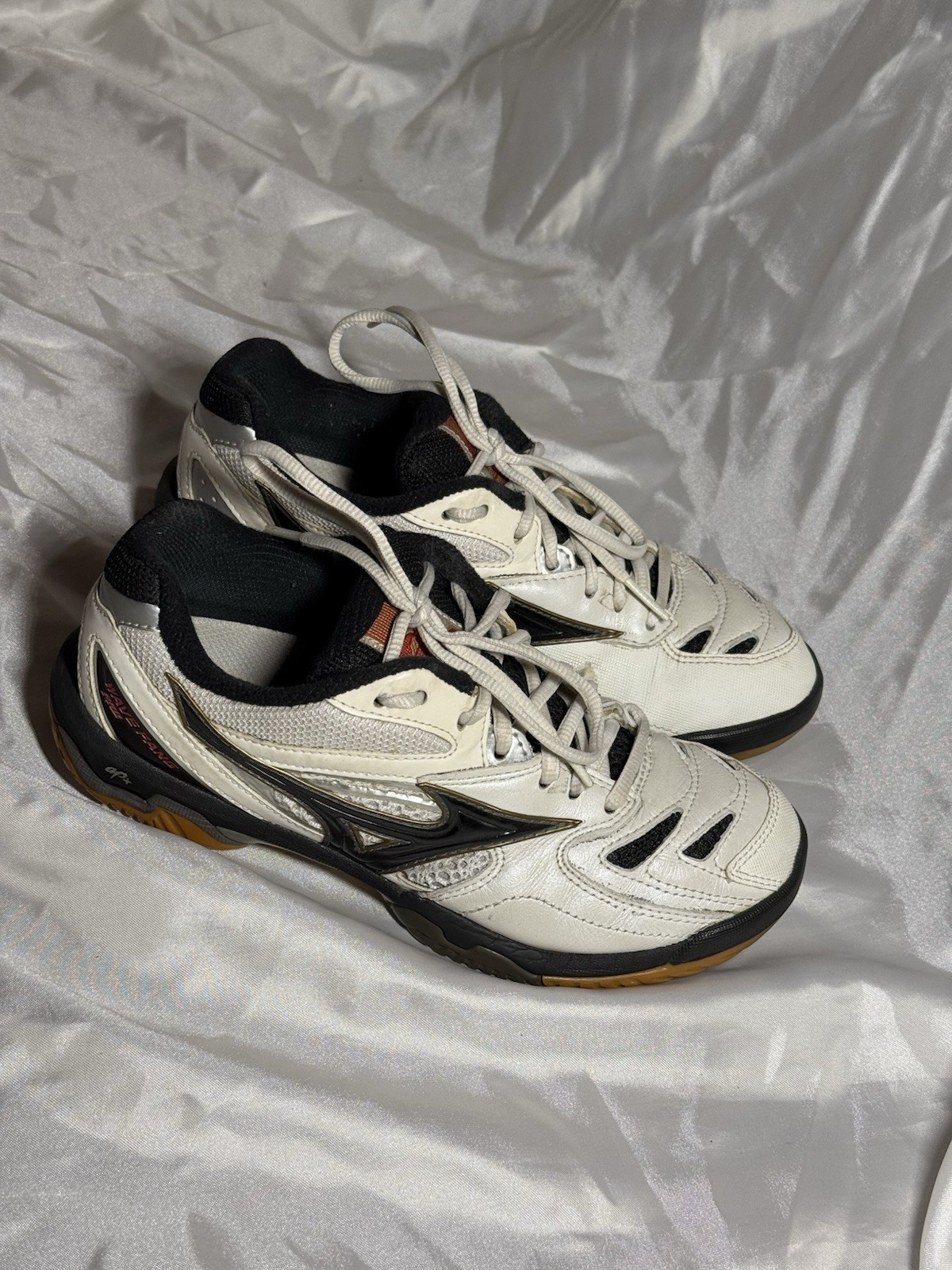 Mizuno Wave Fang Pro Men's Badminton/Volleyball Shoes, White and Black, Size US 6 Tear on inside of left shoe, otherwise only lightly used.