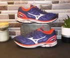 The Mizuno Wave Rider 21 Running Shoes are women's athletic sneakers in a navy blue color. These lace-up shoes feature a low-top design with a mesh upper for breathability and a rubber outsole for traction. They are lightweight, cushioned, and designed for performance, making them ideal for activities like running, walking, and training. The shoes are part of the Mizuno Wave Rider product line and have a modern, colorful design with accents of lace and logo detailing. Perfect for active women looking for comfortable and stylish footwear.