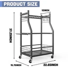 garden tool organizer Keeps Tools Organized Without Wall Space: This garden tool storage stand holds tall tools like rakes and shovels. It keeps tools upright and organized, preventing them from falling or damaging walls, transforming cluttered spaces into neat storage Larger Size and Storage Capacity: Our tool organizer holds rakes, shovels, mops, brooms, and more. It features slots for long handles, D-grip handles, hooks for small tools, providing ample, organized storage Portable Design with Wheels: Easily move garden tools around your yard or garage with this wheeled organizer. Ideal for solid floors, the wheels offer flexibility that wall-mounted racks lack, allowing you to roll the cart close to your work area or outside Easy to Access: Ideal for garages, sheds, and gardens, this movable yard tool stand allows tools to be accessed from all sides, providing quicker and more convenient access during gardening tasks Heavy-Duty Construction: Made from durable steel with a black protective coating, this garden tool cart is designed to withstand heavy tools and large-capacity storage, built to last Easy Assembly: Quick and simple to assemble with the included instructions and hardware. No additional tools or wall-mounting are required, making it a hassle-free storage solution