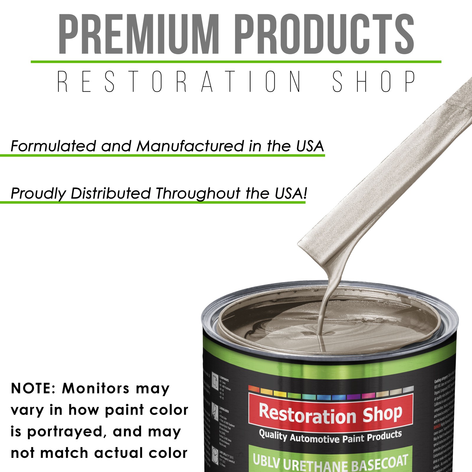 TCP Global Ebay Storefront Ordering | Shipping | Returns | International Product Information FLAMMABLE/HAZARDOUS ITEMS ARE SHIPPED VIA UPS GROUND/STANDARD TO THE LOWER 48 U.S. STATES & CANADA. ***SHIPPING VIA U.S. POSTAL SERVICE OR TO A P.O. BOX IS NOT AVAILABLE.*** RUSH AIR SHIPPING IS AVAILABLE IN CONTINENTAL U.S. FOR AN ADDITIONAL HAZMAT AIR SHIPPING CHARGE. CONTACT US PRIOR TO ORDERING FOR AIR SHIPPING QUOTE. IF ORDER IS PLACE FOR AIR SHIPPING YOU WILL BE CONTACTED FOR ADDITIONAL SHIPPING PAYMENT. INTERNATIONAL SHIPPING IS AVAILABLE. CONTACT US FOR SHIPPING QUOTE PRIOR TO ORDERING. Part# RSP UBLV2302-KIT-M-P Mocha Frost Metallic - LOW VOC Urethane Basecoat with Premium Clearcoat Auto Paint (Complete Medium Gallon Paint Kit) Professional Automotive Coating Complete 1 Gallon Restoration Shop - Low 3.5 VOC Urethane Basecoat with Premium Clearcoat Auto Paint Kit with Medium Drying Reducer (Used when the ambient temperature range is 70-85Á F). The kit provides 1-1/2 gallons (6 Quarts) of sprayable basecoat color material and 1-1/4 gallons (5 Quarts) of Premium Clearcoat. UBLV Paint Kit includes 1 Gallon of UBLV Low VOC Urethane Basecoat Paint Color, 1 Gallon of XR70 Exempt Medium Urethane Reducer, 1 Gallon of HS3010 Premium High Solids Ultra Clear, 1 Quart of HS3030 Premium High Solids Hardener, 5 Pack of 190 Micron Nylon Automotive Strainers and a 5 Pack of Wood Paint Mixing Sticks. The Restoration Shop (UBLV) Low VOC Urethane Basecoat and Premium Clearcoat System is a State-of-the-Art High-Performance Professional Easy-To-Use Paint Coating System that is Designed to Reproduce the Hi-Tech O.E.M. Automotive Finishes Found on Today's Vehicles. UBLV is an easy to spray fast-drying basecoat/clearcoat system that provides a long-lasting and very high gloss topcoat finish result. UBLV is an extremely durable, chemical and solvent resistant coating that also resists chipping, cracking, and UV ray fading. Restoration Shop's (UBLV) is a Low 3.5 VOC compliant basecoat/clearcoat paint system that may be used in National Rule or Low 3.5 VOC limit States when using it with the proper XR series reducers. Note: Monitors vary - onscreen colors are for general color reference only. Restoration Shop (UBLV) LOW VOC URETHANE BASECOAT with PREMIUM CLEARCOAT - COMPLETE MEDIUM GALLON PAINT KIT Includes: 1 - Gallon of Restoration Shop Low 3.5 VOC Premium Urethane Basecoat Auto Paint Color 1 - Gallon of Medium (70-85¡ F) Exempt Urethane Reducer (RSP XR70-GL) 1 - Gallon of Custom Shop Series Premium High Solids Ultra Clear (RSP HS3010-GL) 1 - Quart of Custom Shop Series Premium High Solids Hardener (RSP HS3030-QT) 5 - Each Premium 190 Micron Nylon Automotive Strainers 5 - Each Wood Paint Mixing Sticks UBLV Paint Color has a 2 to 1 Mixing Ratio, 2 parts UBLV Paint Color to 1 part XR Urethane Reducer. UBVL Basecoat color requires a 2 to 1 mix ratio with the included medium drying (70-85¡ F) XR exempt urethane reducer before spraying. Custom Shop Series Premium High Solids Ultra Clear (RSP HS3010) has a 4 to 1 Mix Ratio, 4 parts Urethane Clearcoat to 1 part Urethane Hardener A Low 2.1 VOC medium-solids (MS), 2K (two-component) polyurethane clearcoat formulated to offer ease of application and has great flow and leveling, excellent durability, exceptional gloss and good distinctness of image. This superior quality clearcoat is the professional's topcoat choice for use in today's high-end auto body shops. This clearcoat is used for overall application and is also used for spots and panels. The clearcoat is VOC compliant for all multi-stage topcoat systems, and can also be applied on top of other basecoat brands. Optional Reducers Available Separately XR Series Exempt Reducers to Maintain a 3.5 VOC Level: XR60 Exempt Fast Reducer 60-70¡ F; XR70 Exempt Medium Reducer 70-85¡ F; XR85 Exempt Slow Reducer 85¡ F and above Since 1974, Restoration Shop has been a Trusted Top Quality Brand and The Source for Innovative Premium Quality Automotive Products! Restoration Shop Low VOC UB Urethane Basecoat is a state-of-the-art basecoat designed to reproduce the hi-tech O.E.M. finishes found on today's vehicles. It features outstanding coverage, rapid dry time, excellent metallic control and optimum repairability. UBLV provides an environmentally friendly solvent solution. View all categories Warehouse Locations San Diego, California South Carolina