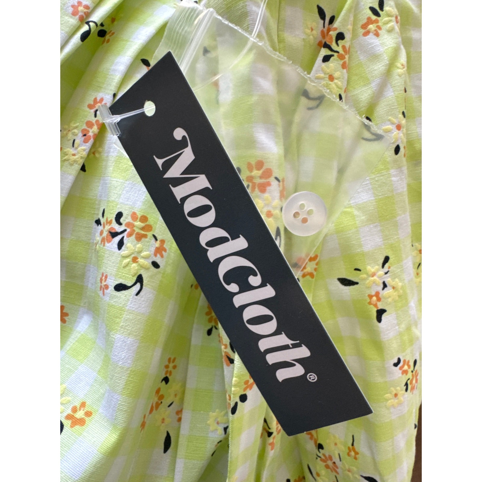 NWT ModCloth Imagine the Possibilities Pleated Skirt Green Gingham Floral Womens Size 6 Finished with a hidden side zipper for a seamless fit, it’s perfect for pairing with a tucked-in blouse and ballet flats or dressing down with a tee and sneakers. Side pockets. Fully lined Knee length Pleated detail Checkered Floral pattern Back zipper with button closure. Shell: 97% Cotton, 3% Spandex. Lining: 100% Cotton. Machine wash. Waist: 13.5" Length: 26" New with Tag Beach, Vacation, Tropics, Resort, Feminine, Modern, Classy, Classic, Timeless, Officewear, Careerwear, Mature, Casual, Everyday Wear, Stylish, Party, Date Night, Artistic Charm, Elegance, Whimsical, Skirt, Checkered, Floral