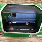 The product is a Model Power Minis diecast Mercedes-Benz L319 van in blue color, with a scale of 1:87. The model is part of the HO scale and comes in its original packaging (NIB). It is a contemporary manufacture toy vehicle categorized under diecast and toy vehicles, specifically designed for collectors and enthusiasts of cars, trucks, and vans. The van is detailed and intricately designed to resemble the real Mercedes-Benz L319 model, making it a desirable addition to any diecast collection.
