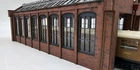 Combined postage is no problem : please request this and it will be completed automatically after purchase. Modelux 'Derby' 2 lane Engine Shed Kit Fully coloured. The brick is litho printed and laminated onto 1.3mm multicore board. Every component is fully coloured The roof is grey and features structural trusses. This kit does not come with the glazing kit or downspout kits, which are available separately The gables feature Modedux 'Invisiseam' meaning near invisible joins between the elevations. The walls are made 5 layers - an inner wall concealing the acetate windows, then the acetate, then the window frame sheet, the window reveal brickwork, and finally the piers .... The whole assembly is robust and very realistic. This kit is designed so that another module can join in series, if desired, to extend the length ( as long as you require ). Length - 300mm Height to gable tops - 120mm width overall - 170mm door height - 73mm individual door width - 60mm Flat pack. PVA required for assembly