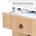 Dresser for Bedroom, Fluted Chest of Drawers with Storage, 47" Wide Wood Storage Dressers & Chests of Drawers for Closet, Waveform Fluted Drawer Organizer for Bedroom, Hallway, Entryway STYLISH APPEARANCE : This light-colored wooden vanity features wave-shaped drawer panels, presenting a modern and elegant look. With six spacious drawers and sleek metal handles, the drawers glide smoothly and quietly on metal tracks, adding a touch of elegance to any decor and becoming a striking focal point. AMPLE STORAGE SPACE : Each drawer measures 20.31 inches in length, 9.8 inches in width, and 5.1 inches in height, offering ample storage space to keep your room tidy and organized. The broad top surface is perfect for displaying glasses, photos, keys, and small potted plants. VERSATILE DESIGN : The grooved drawer design allows this vanity to integrate seamlessly with various decor styles, making it suitable for the living room, bedroom, or entryway. It provides practical storage while enhancing the room's overall aesthetic, serving as a stylish alternative to Malm or IKEA Malm vanities. STURDY CONSTRUCTION : Crafted from high-quality MDF wood and premium hardware, the vanity ensures durability and long-lasting use. It features tapered wooden legs and includes two anti-tip kits to increase stability and safety. Each drawer supports up to 25 lbs. EASY ASSEMBLY : This vanity comes with detailed assembly instructions and an anti-tip nylon strap, making the assembly process simple and hassle-free. Follow the step-by-step guide to quickly set it up and securely anchor it to the wall. Our customer service team is always ready to offer support with any assembly issues.