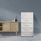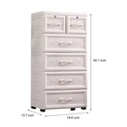 Large Capacity : There are 4 large drawers and 2 small drawers with locker, the wheel makes it move to anywhere easily.. Made of eco-friendly materials, harmless and easy to wipe. Product Size: 19.6" L x 13.7" W x 40.1" H. Stable Structure : The handles attached on front board are durable and easy to pull even under full load.The design of the anti-drop buckle prevents the drawer from falling after being pulled open. Perfect for Storage : Sleek, modern and simple look goes with a variety of styles, suitable for organizing items wherever you prefer. The wooden top matches attractively with your other furniture and can withstand up to 100 lbs. Easy to Assemble : No extra tools required. All accessories and tools are included. easy installation. Applicable to: European-style exquisite design, large-space storage classification, suitable for bedrooms, living rooms, kitchens, offices, etc. Product Specifications : color: White Product size: 19.6" L x 13.7" W x 40.1" H (50*35*102cm) Product Weight: 18 lbs (7.9kg) Material: PP Large-capacity storage cabinet, healthy material, easy to clean, top lock, safe storage. Three-dimensional carved handle, convenient and beautiful. Anti-drop buckle, safe and convenient. Silent pulleys for easy movement. Heavy-duty, can hold up to 100 lbs. On Mar 10, 2024 at 20:19:06 PDT, seller added the following information: