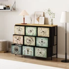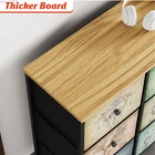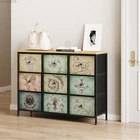 Material: Iron Parts: Main frame Square Tube 16*16*0.6MM. Wooden Board: 15mmp2 chipboard; with Cloth Drawer, Solid Wood Round Handles Product Dimensions 98*30*75cm Number of Drawers 9 Descriptions: 1.Dresser with 9 Drawers:Our products are self-developed and have applied for relevant patents, so the structure is more stable and the patterns are more stylish.This fabric dresser is great for bedroom, nursery, closet, entryway, kids, living room and matches perfectly with other storage dressers. 2.Sufficient Storage Space: The dresser measures 38.5" W x 11.8" D x 29.5" H; bedroom dresser with 9 fabric drawers provides large storage space and is ideal for organizing clothes, blankets, toys. Wood top provides hard surface for displaying lamps, alarm clocks, books, eyeglasses, etc. 3.Superior Material:The sturdy steel frame and durable MDF wooden waterproof wooden top provide reliable strength and stability. Made of solid particle board, this drawer dresser is sturdy and safe enough to support long-lasting use. 4.Large Capacity: The modern dresser with 9 removable and foldable drawers , Can meet the classification storage, avoid confusion, and never look for things everywhere. Elegant easy pull wooden handle for quiet opening and closing. On Oct 9, 2023 at 11:17:48 PDT, seller added the following information: On Oct 11, 2023 at 00:45:37 PDT, seller added the following information: