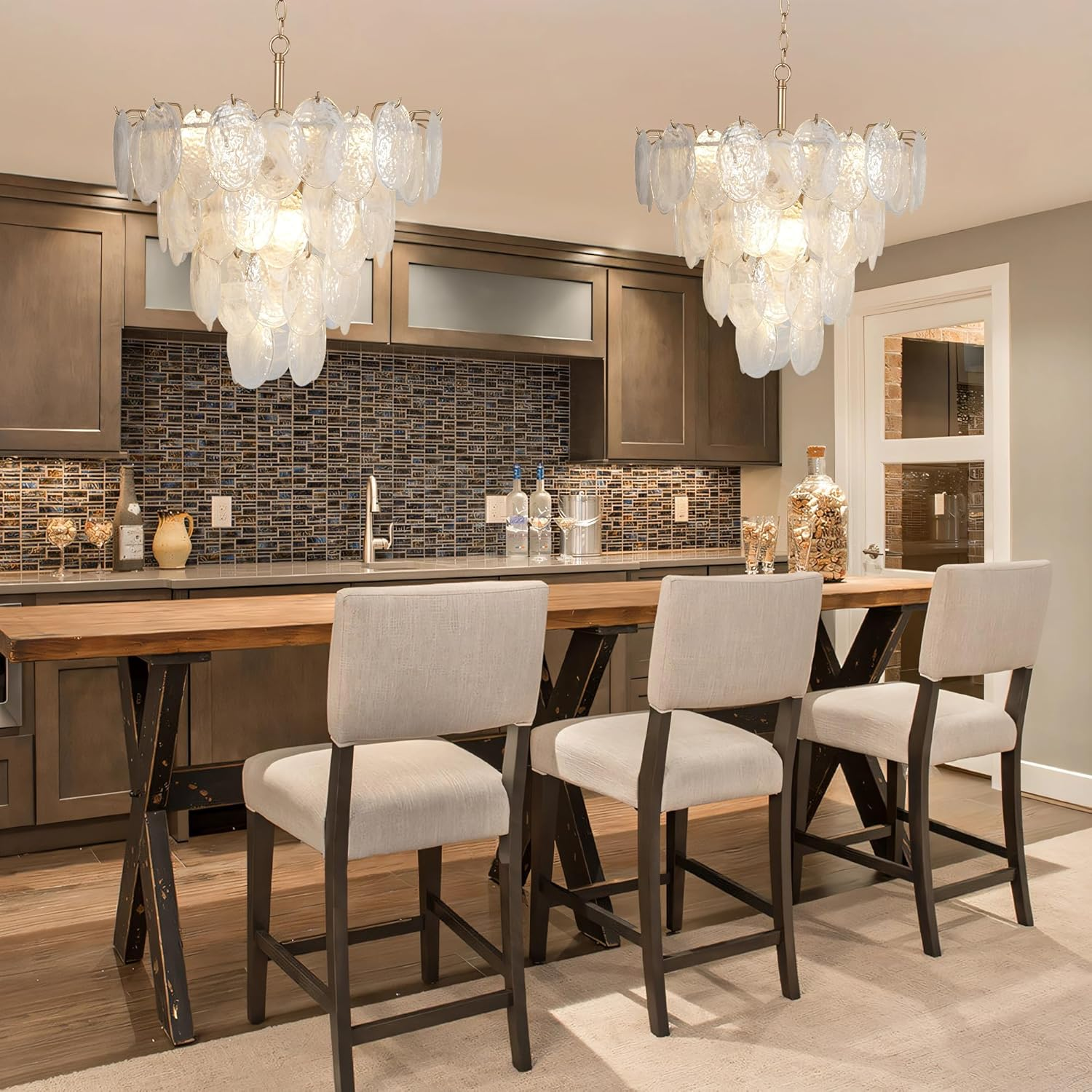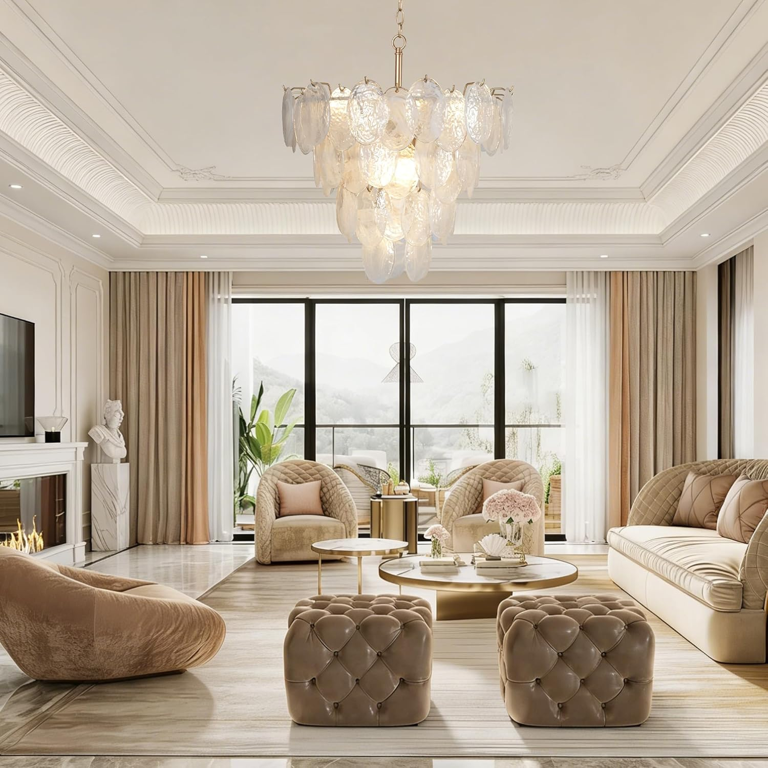 Store New Arrivals Add to Favorite View Feedback Contact Modern 9-Light Gold Chandelier with Cloud Glass for Dining Room & Living Space Description Light Source Type LED, CFL, Halogen, Incandescent, Fluorescent Item model number B0FXKYXY75 Style Modern,Farmhouse,Coast,Vintage,Contemporary,Luxury Power Source Corded Electric Number of Light Sources 9 Control Method Push Button Embellishment Cloud Glass Batteries Included? No Lighting Method Adjustable Indoor/Outdoor Usage Indoor Unit Count 1.0 Count Room Type Bathroom,Bedroom,Kitchen Island, Dining Room, Hallway, Foyer, Living Room Assembly Required Yes Installation Type Semi Flush Mount Material Cloud Glass, Metal Efficiency 13.33 lumens per watt Switch Type Push Button Light Output Maximum 7200 Lumens Finish Type Painted Specific Uses For Product Indoor use only Included Components Mounting Hardware, Wires, Installation Manual Fixture Type Removable Brightness 7200 lumen Light Color Warm light,White light,Natural light Water Resistance Level Not Water Resistant Batteries Required? No Item Weight 35 pounds Light fixture form Chandelier Special Features Adjustable Height, Dimmable Special Feature Adjustable Height, Dimmable Bulb Base E12 Shade Color Gold Mounting Type Ceiling Mount Color Gold Wattage 60 watts Voltage 110 Volts Recommended Uses For Product Lighting Shade Material Glass Finish types Painted Product Dimensions 21"L x 21"W x 23"H Size 21in Handcrafted Design: The cloud glass chandelier is hand-blown by artisans to form clouds. The glass interior reveals natural textures resembling mist and marble patterns, creating a hazy, artistic aesthetic Gold Cloud Light Size: 21.2"W x 23.6"H, This glass hanging pendant light features a 63" adjustable chain that can be customized to your desired length Farmhouse Chandelier Bulbs: Modern chandelier enhances aesthetic appeal while providing illumination. The round chandelier for entryway accommodates 9 * E12 bases (max 60W each), compatible with incandescent, LED, CFL, and halogen bulb types (bulbs not included) Suitable Space: The bedroom chandelier light is perfectly adapted to various styles, from farmhouse to modern and it is very suitable for bedroom, dining living rooms, bathroom, kitchen islands, hallways, and halls etc Easy to Install: With all mounting hardware and a detailed mounting instruction included, you can get this gold chandelier light fixture installed quickly and hassle-free. Round crystal chandelier can be installed on flat ceilings, sloped ceilings, and vaulted ceilings Product description Obihivlo Modern Cloud Glass Chandelier Warm-toned metal frame base. Three layers of staggered mica glass take center stage. Matte and translucent textures interweave—keeping the glass crisply clear, while its irregular finish softens light. When lit, it glows like light wrapped in mist: hazy, gently comforting Gold Hanging Chandelier Round Hanging Pendant Light 1 Adjustable Height 2 Different Ceilings Gold 3-Tiered Chandelier Lighting Round Glass Chandelier Details Displayed Cloud Glass E12 Base Sturdy Mounting Plate Adjustable Chain chandelier for living room dining chandeliers over table cloud lights for bedroom chandelier for entryway kitchen chandelier More Chandelier Products Add to Cart Add to Cart Add to Cart Add to Cart Add to Cart Customer Reviews 5.0 out of 5 stars 2 4.6 out of 5 stars 3 4.6 out of 5 stars 3 4.3 out of 5 stars 4 — 5.0 out of 5 stars 3 5.0 out of 5 stars 3 Price $369.99 $ 369 . 99 $179.99 $ 179 . 99 $189.99 $ 189 . 99 — — $109.99 $ 109 . 99 $89.99 $ 89 . 99 Diameter 21 24 42 25 24 24 15 Material Metal,Glass Metal,Shell Metal,Shell Metal, Glass Metal, Glass Metal, Glass Metal, Glass Bulb Type E12 E12 E12 E12 E12 E12 E12 Light Number 9-Lights 7-Lights 11-Lights 5-Lights 6-Lights 6-Lights 3-Lights Height Adjustable? ✔ ✔ ✔ ✔ ✔ ✔ ✔ ABOUT US We’re committed to offering great deals on quality products you can trust. From home décor and garden essentials to tools, hardware, and pet accessories, there’s something for everyone at prices you’ll love. SHIPPING Orders ship directly from the USA for fast and reliable delivery. Most items ship within 1 business day and include free shipping to the lower 48 states. International orders are fulfilled through eBay’s Global Shipping Program. Simply proceed to checkout to view shipping costs, duties, and taxes for your country. FREE RETURNS We offer a 30-day return policy on items you are not completely satisfied with. You may choose a full refund or an exchange.. CUSTOMER SATISFACTION We do everything we can to ensure every customer is fully satisfied. If something is not right, send us a message and we will take care of it quickly.