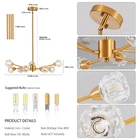 Specification Product Information Item Code: W1340P189548 Product Type: General Item Product Name: Modern Crystal Chandeliers, 9 Lights Golden Chandelier for Living Room Bedroom, Dining Room Chandelier Over Table, Kitchen Light Fixtures(Bulbs Not Included) Place of Origin: China Main Color: Golden Main Material: Iron Filler: Crystal Power Supply Mode: Hard-Wired Voltage: 120V Product Dimensions Assembled Length (in.): 27.60 Assembled Width (in.): 27.60 Assembled Height (in.): 5.90 Weight (lbs.): 9.60 Package Size Length (in.): 16.10 Width (in.): 13.40 Height (in.): 7.10 Weight (lbs.): 11.30 Product Features This light fixture is designed in globe crystal diamond shape with chrome lamp body; When you turn on the light, the lighting will reflect through the crystal, adding a romantic, fancy and shining atmosphere to your room. This modern chandelier combines modern style,recommended for dining room chandeliers over table,also this crystal chandeliers can be used for living room, bedroom,kitchen island,entryway bar and etc. This modern chandeliers cmpatible incandescent and halogen bulbs with G9 sockets(40W Max). Please note the bulb is not included. All the socket and wire of the crystal chandeliers are UL listed; All the accessories are included in the package, and we have detail installation instruction, please follow it to install. Description Modern Crystal Chandeliers, 9 Lights Golden Chandelier (Bulbs Not Included) This contemporary chandelier is constructed with a premium iron metal frame and carefully selected crystals, ensuring both durability and an opulent appearance that will elevate your home decor taste. While this chandelier does not come with bulbs included, it is compatible with various lamp types such as LED bulbs, incandescent bulbs, and energy-saving bulbs. This allows you the freedom to choose the most suitable light source for your needs. With detailed installation instructions and all necessary hardware provided, you can effortlessly complete the installation without requiring professional skills or assistance. This saves both time and money. Although this product does not contain light bulbs, it is recommended to match energy-efficient LED lamps to reduce electricity bills and reduce carbon emissions.