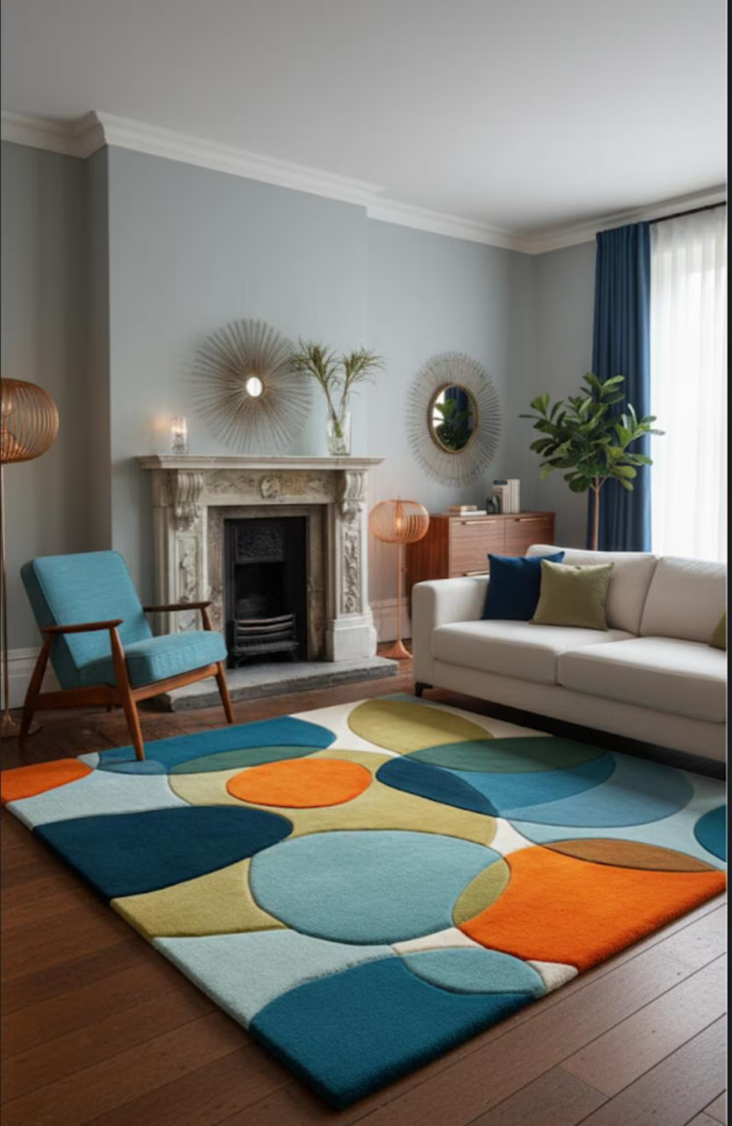 Retro Geometric Orange & Brown Area Rug – Mid-Century Modern Style