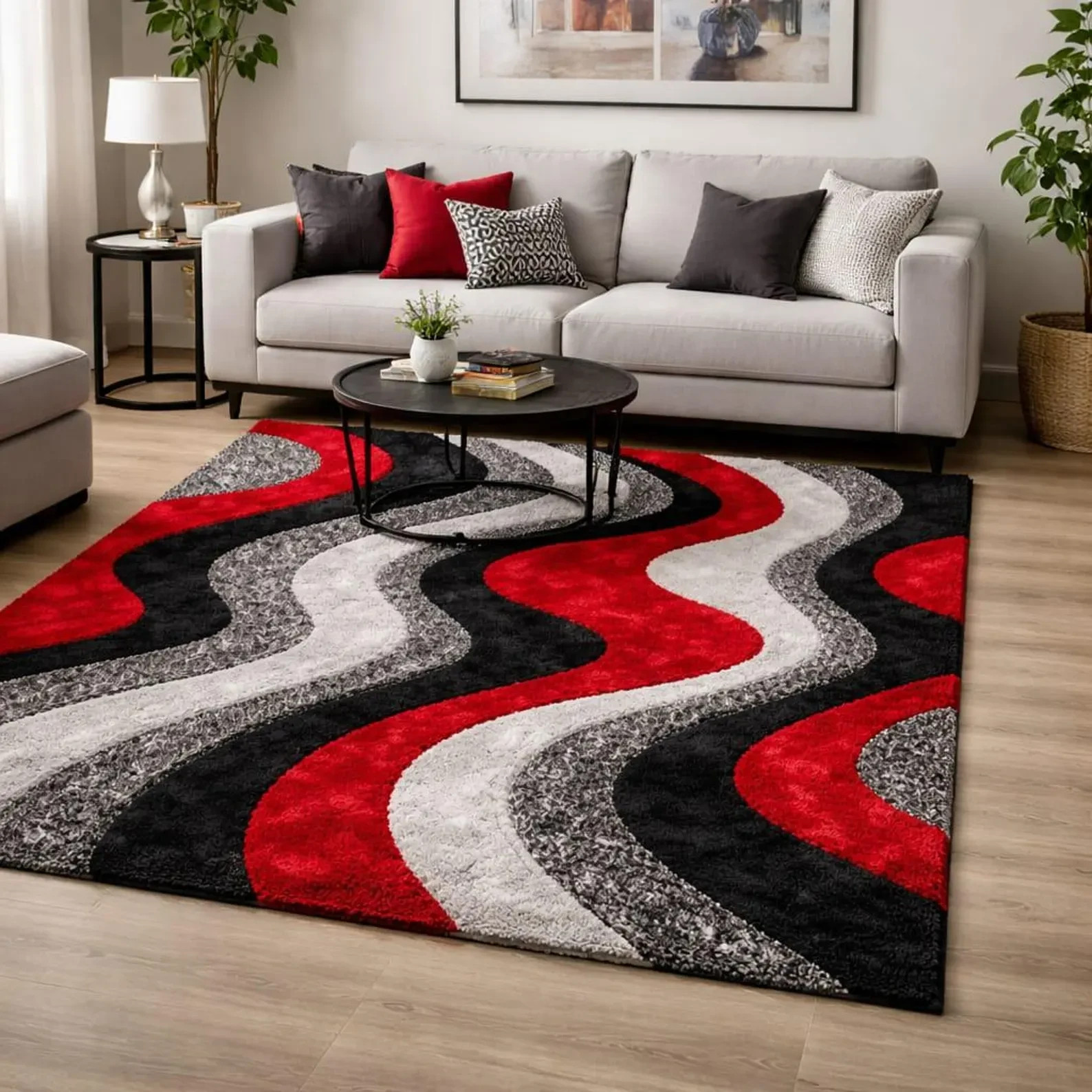 Red and Black Floral Rug, Elegant Modern Home Decor