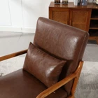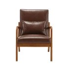Specifications Place of Origin China Main Color Brown PU Main Material PU Leather Filler Foam Product Style Modern Use Case Primary Living Space Wood Type Rubberwood Wood Tone Brown Dangerous Goods #dangerFlag# Dimensions & Weights Assembled Length (in.) 23.23 Assembled Width (in.) 29.53 Assembled Height (in.) 30.71 Weight (lbs) 21.01 Product Features our accent chair is not too low to the ground but still closer than regular chairs. You could lazily seat on it watching movie on laptop, or comfortably enjoy your morning coffee&a book by using it as a very nice spot. Although it doesn't look like a typical gaming chair, it is low and sturdy enough for gamers to play e-games. What's more, our armchairs will never take up too much living space, could be flexibily placed near the sofa, fireside, balcony, study room etc no matter for big house or condo living. Its thick padded cushion, soft upholster, solid wooden structure make it an ideal extra seating for guests in a wide range of age, varying from teens to the elder. The slightly back reclining design of its wooden arms are human economic for resting as well. Using a solid wood frame that retains as much of the original color and texture of the wood as possible, with a beautiful and delicate grain pattern, the structure is solid and reliable, and can withstand up to 330 pounds of weight, providing superb strength and durability. We offer the required hardware, tool, and an illustrated manual to help you in assembling the chair within 15 minutes. Description Eecellent Structure Solid wood frame and wooden legs increase stability and durability.Curved edges, padded with thick foam and upholstered with high-quality fabric, you can seat yourself in it comfortably for relaxation.