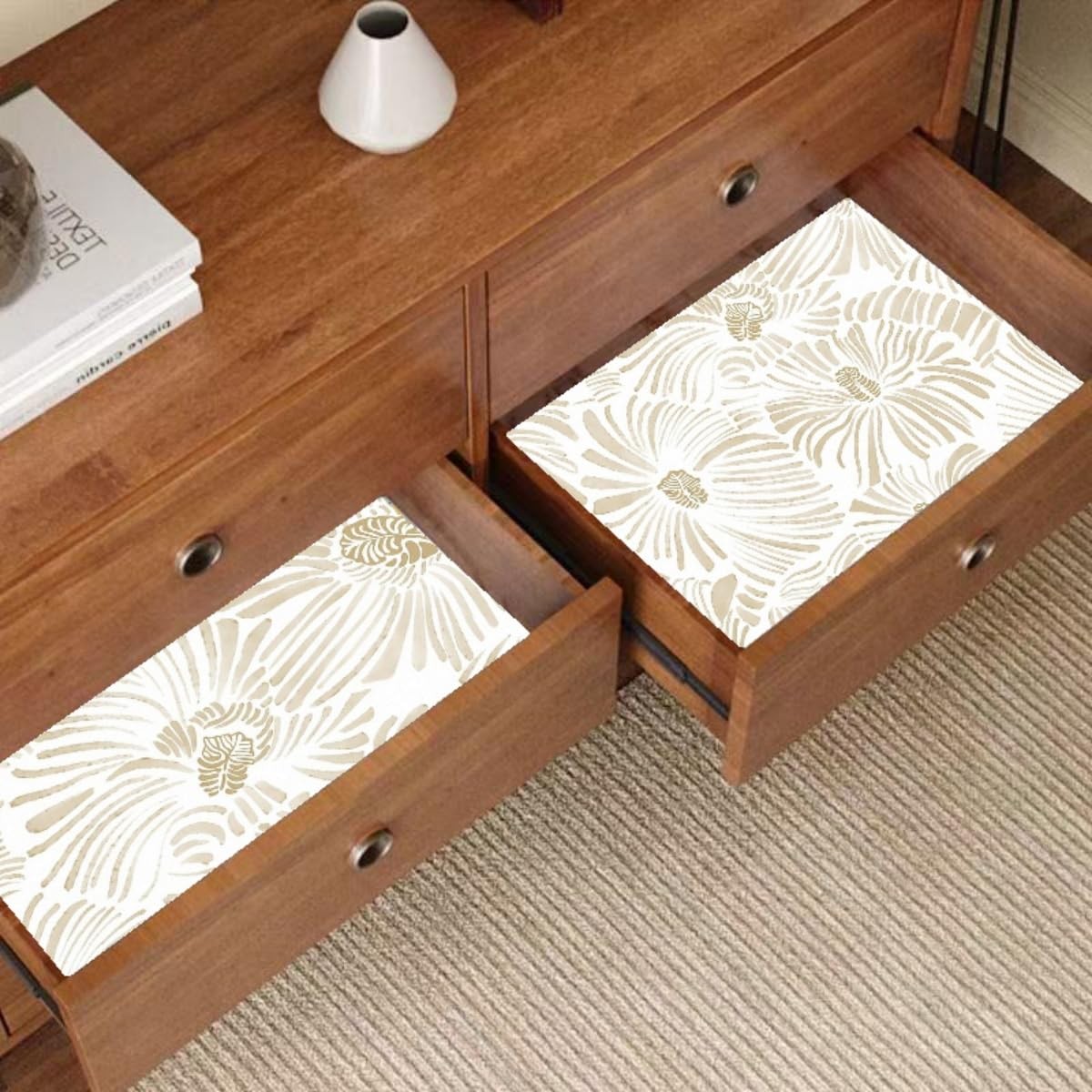 Features: 1.Removable and waterproof.please don't worry,it won't damage your wall or furniture at all 2.Easy to cut and peel away from the paper backing. 3.Can be installed on any flat surface. Specifications: Color:Beige Material: High quality PVC Size: 17.3" x 118"/roll Kind reminder: This paper is thickness,which is much thicker than regular paper. Please use it on any clean, dry and smooth surface, and buy enough rolls at a time to ensure that they are from the same batch to avoid color difference. Attention: Surface texture or dirt may affect the stickiness of Paper! 【Self Adhesive】:Peel and stick vinyl paper with bubble-free, waterproof, DURABLE. It is easy to apply and it won't damage your furniture at all 【Product Zize】:One roll drawer liner of 17.3 inch x 118 inch size can meet your needs for refurbished furniture,economical and affordable [Unique Design]:The Striped removable paper peel and stick Dresser Liner made of vinyl material.Simple and exquisite design,beautiful and generous patterns,rustic style can breathe new life into any furniture 【Easy to Use】:It is Striped pattern shelf paper roll, great for covering any size kitchen cabinet, dresser drawer.Installation is fast and convenient,the grid lines on the back allow you to accurately cut different sizes as needed.(just peel and stick on any flat and clean surface,please do not apply it on dusty wall, cement, rough wood surface.) 【Multi Purpose】:Not recommended for use as wallpaper.Suitable for any smooth surface objects and flat surfaces,such as furniture cabinets,countertops,doors,stairs,bookshelves,drawers,cushions,shelves,kitchen counters