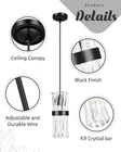 Ken & Ricky Crystal Pendant Light, Modern Black 1 Pack, Black,1PK Product Details Brand: Ken & Ricky Color: Black,1PK Material: Metal, Crystal Style: Modern/Industrial Light fixture form: Pendant Room Type: Kitchen, Bathroom, Living Room, Bedroom, Dining Room Product Dimensions: 5"L x 5"W x 55"H Specific Uses For Product: Indoor use only Indoor/Outdoor Usage: Indoor Power Source: AC Installation Type: [IN] Inferred Special Feature: Two Style Options, Adjustable Height Control Method: Touch Light Source Type: LED/CFL/Incandescent Finish Type: Polished Shade Material: Crystal Number of Light Sources: 1 Voltage: 120 Volts (AC) Light Color: white Included Components: [Mounting Hardware] Embellishment: Crystal Lighting Method: Downlight Number of Items: 1 Wattage: 60 watts Bulb Base: E26 Controller Type: Push Button Switch Type: Touch Unit Count: 1.0 Count Water Resistance Level: Not Water Resistant Brightness: 800 lumen Mounting Type: Hanging Shade Color: Black Fixture Type: Non Removable Assembly Required: No Manufacturer: Ken & Ricky Size: 1 Pack Recommended Uses For Product: bedroom,hallway, dining room, laundry,kitchen island,living room,bathroom,etc Model Name: hanging pendant light Item Weight: 4.4 pounds Item model number: eec65914-7ed2-4aba-b32a-841f0ee78b65 Finish types: Polished Special Features: Two Style Options, Adjustable Height Batteries Included?: No Batteries Required?: No Product Dimensions : 5 x 5 x 55 inches; 4.41 Pounds Item model number : eec65914-7ed2-4aba-b32a-841f0ee78b65 Manufacturer : Ken & Ricky Brand: Ken & Ricky Color: Black,1PK Material: Metal, Crystal Style: Modern/Industrial Light fixture form: Pendant 【Modern Style】 These kitchen island lights combine black metal with clear crystal bars, offering a modern style that instantly brightens and adds a striking touch to any room. Its sleek design and sparkling crystals provide a contemporary look that captivates. 【Easy Installation with Two Style Options】 Installing this black pendant lights kitchen island is straightforward, featuring two methods for different aesthetic appeals. The first method involves inserting the crystal bars into the grooves at equal heights for a uniform look. The second method allows for adjusting adjacent crystal bars to varying heights, creating a dynamic and varied appearance. Choose the style that best suits your taste and interior design. 【Versatile for Multiple Settings】 Perfectly suited for various rooms including kitchens, dining rooms, bathrooms, and bedrooms. This chandelier's adaptable design enhances any space, making it ideal for both functional lighting and decorative accent. 【E26 Bulb Compatibility】 This island lighting fixtures hanging utilizes an E26 bulb base, ensuring wide compatibility with a range of bulb types(Bulbs not Included). Whether you prefer incandescent, LED, or energy-saving bulbs, this fixture accommodates your lighting needs with ease.