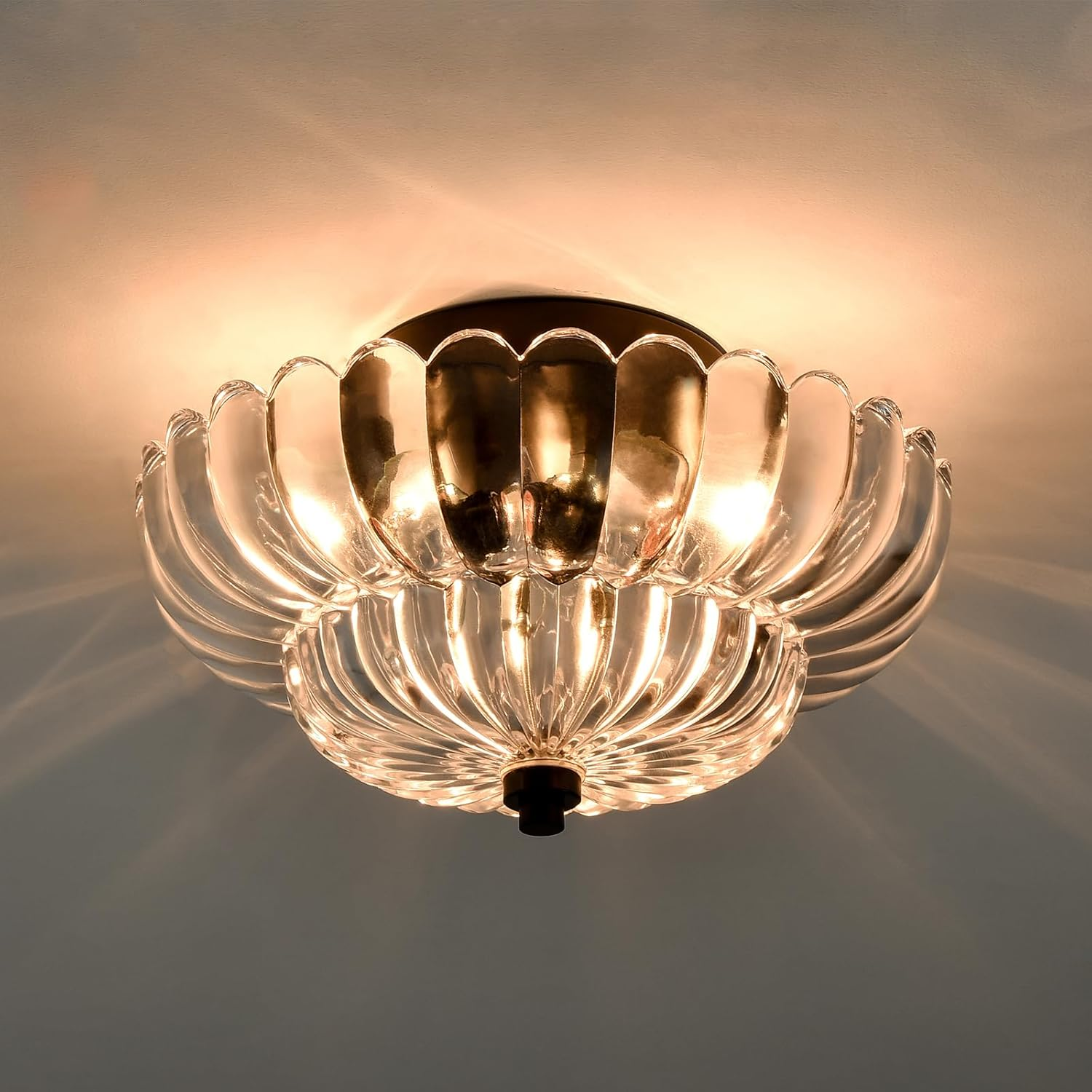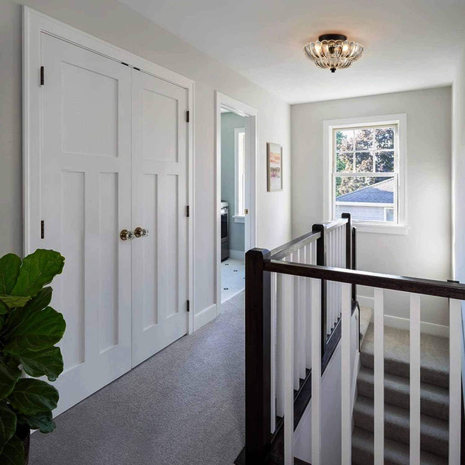This modern black ceiling light adds a sleek yet elegant touch to any room. The scalloped clear glass diffuses light beautifully, creating a warm and inviting atmosphere. The LED downlighting is energy-efficient and bright, perfect for living rooms or hallways. The semi-flush mount design keeps it close to the ceiling while still making a stylish statement. Easy to install and hardwired for reliable use, this fixture combines traditional charm with contemporary appeal. Love the subtle crystal embellishments—it’s both functional and eye-catching!