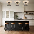 $ 77.51-Light Vintage Black Crystal Drops Close to Ceiling Light Fixture Round Tiere...