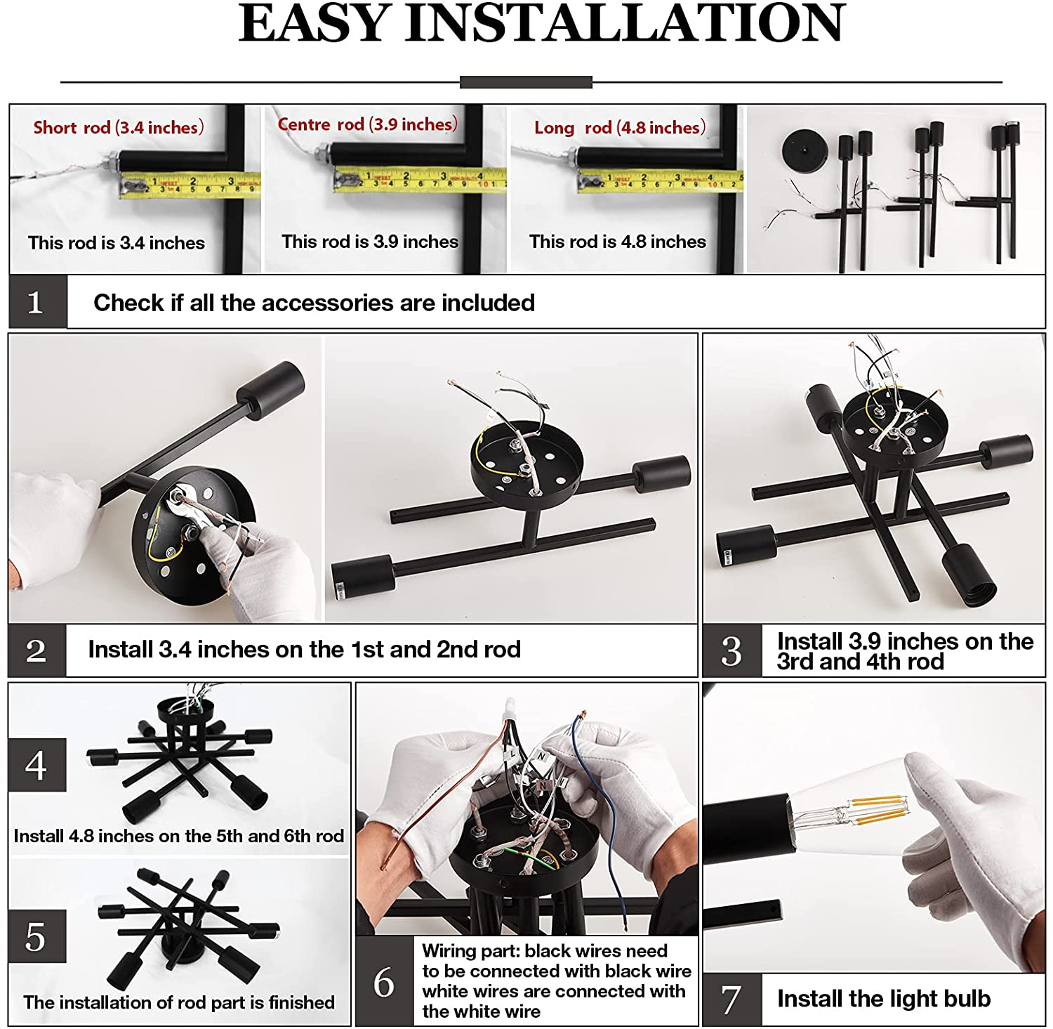 Store New Arrivals Add to Favorite View Feedback Contact Semi Flush Mount Modern Ceiling Light Fixture, 6 Lights Black Vintage M Description Item model number Y-102 Light Source Type LED Style Modern, Retro, Classic, Contemporary Number of Items 1 Power Source Corded Electric Fixture Type Non Removable Number of Light Sources 6 Control Method Touch Batteries Included? No Lighting Method LED Mounting Type Ceiling Mount Controller Type Push Button Unit Count 1.0 Count Room Type Kitchen, Living Room, Dinning Room, Bedroom,Study Room,Corridor,Farmhouse, Assembly Required Yes Installation Type Semi Flush Mount Product Dimensions 16.53"L x 16.53"W x 6.29"H Material Metal Efficiency energy efficient Finish Type Matte Black Specific Uses For Product Home Indoor/Outdoor Usage Indoor Brightness 4800 lumen Light Color warm white Water Resistance Level Not Water Resistant Batteries Required? No Item Weight 2.86 pounds Light fixture form Chandelier Special Features Dimmable Special Feature Dimmable Part Number PURPLE-gGd857 Shade Color black Color Temperature 2700 Kelvin Color 6 light Wattage 60 watts Bulb Base E26 Shape Drop Voltage 130 Volts Plug Format A- US style Recommended Uses For Product indoor Shade Material Metal Finish types Matte Black Switch Type Push Button Retro and modern cabin style: industrial chandelier, color: matte black, suitable for modern and retro home.(There is installation video on the page link of lamps for reference) Black Chandelier:Create a cozy and comfortable home atmosphere with the farmhouse-inspired, injecting an airy modern twist on farmhouse design while lasting elegance. Beyond brightening your abode, dining room lighting fixtures hanging make a statement in any interior design without occupying valuable floor space. Chandelier size: 16.53 inches; total height of the lamp: 6.29 inches. Base type: E26 [Bulbs Not Included]. Watt: up to 60 watts Extensive decorations: Edison-Style retro ceiling lights are perfect for kitchens, dining rooms, foyer, corridors, bedrooms, cafes, dining rooms and any space you like. Provide the perfect shopping experience for each customer. If you have any questions or problems after receiving the product or installation, please don't worry and please feel free to email us. Product Description The video showcases the product in use. The video guides you through product setup. The video compares multiple products. The video shows the product being unpacked. About ASGYISA We aim to produce energy-efficient products. Make sure the excellent quality of products and also a perfect stylish. Bringing you the best light experience. Black Ceiling Light Ceiling Light Fixture Black Color Gold Modern Style Industrial Metal Material Metal 6-Light Number of Lights 6-Light Black Color Chrome Modern Style Contemporary Metal Material Metal 6-Light Number of Lights 6-Light Black Color Bronze Modern Style Vintage Metal Material Metal 6-Light Number of Lights 6-Light Black Color Black Modern Style Modern Metal Material Metal 6-Light Number of Lights 8-Light Gold Ceiling Light Chrome Ceiling Light Bronze Ceiling Light 8-Light Ceiling Light It adds a lot of class and charm to bedroom,living room, kitchen, dining room. 1 Bedroom 2 Farmhouse 3 Dining Room 4 Living Room 5 Kitchen Modern and Stylish Design Hanging The classic chandelier lighting in the Living Room. let space be filled with the rustic-inspired appeal, which surprises and impresses your guest at the first sight. Product Specifications: Bulb Base: E26 Voltage: 110-130 V (U.S. standard line voltage) Bulbs Included or Not: Bulbs are NOT included Maximum Compatible Wattage: 60 Watts Material:Metal Number of Lights: 6- Light Color: Black Style: Modern, Vintage,Industrial It brings a stylish contemporary feel to kitchen,island,farmhouse, dining rooms,living room,bedrooms,entryways,foyer, living areas or and any space you like.Make your house stylish and unique. Easy Installation (There is an installation video in the light fixture video link for reference) · Please install it by a licensed electrician. · Please make sure you have cut off the electricity supply before installation. · For the longer service life, Please use it in dry environment. E26 Bulb Base(Bulb Not Included)Compatible with LED ,Edison ,incandescent , CFL and halogen bulbs,up to 60 watts maximum. Fully dimmable when used with a dimmer bulb and compatible dimmer switch (Bulbs Not Included) ABOUT US We offer the best prices around on high quality products. Our E-store includes media such as books, movies, music and games while offering electronics, toys, sporting apparel, clothing, tools, general home, garden items and more. SHIPPING We are always working hard to ensure your package arrives as soon as possible. Please understand that some factors like weather, high postal traffic, and the performance of shipping companies are outside of our control. RETURNS We offer a 30-Day Return Policy on items which you are not completely satisfied with. You have the option for a full-refund or an exchange of the item. PAYMENT We accept PayPal. CONTACT US This page content is yet to come Please ad us to your favorite seller and visit again later Thank You CUSTOMER SATISFACTION We try our very best to make sure every customer is completely satisfied. If there's a problem, message us! We're happy to help.