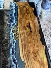 Bring the beauty of the ocean into your living room with this stunning, one-of-a-kind ocean epoxy wooden table. Each piece is meticulously handcrafted using high-quality wood and vibrant, custom-blended epoxy resin to create a breathtaking ocean-inspired design that will be the focal point of any space. Features: Handmade Craftsmanship: Each table is individually crafted by skilled artisans, ensuring no two pieces are alike. The natural wood grain and custom epoxy resin blend create a truly unique design. Stunning Ocean-Inspired Design: The rich, deep blues and shimmering waves capture the calming essence of the sea, making this table a statement piece in any living room, den, or office. Premium Materials: Made from high-quality, durable wood and top-grade epoxy resin, this table is both visually striking and built to last. Live Edge: The live edge design preserves the natural beauty of the wood, adding an organic touch that enhances the overall aesthetic. Versatile Size: Perfectly sized to function as a coffee table or accent table, it adds both beauty and functionality to your space. Customizable Options: Want to tweak the colors or finish? Reach out for custom requests to make this table truly yours. Dimensions : Used Material: Epoxy Wooden And Resin Handmade Arts Color: Blue Size: 48"x24" Inches Shape: Rectangle Pattern: Handmade Room: Bedroom, Dining Room, Hallway, Home Office/Study, Kid’s Bedroom, Kitchen, Laundry/Utility Room, Living Room, Patio, Playroom Packaging: Wood & Foam Export Packing Care Instructions: Wipe clean with a soft, damp cloth. Avoid harsh chemicals or abrasive cleaners to maintain the integrity of the wood and resin. Make a bold statement and invite the serene beauty of the ocean into your home with this handmade ocean epoxy wooden table. Order today and elevate your living space with a piece that combines art, nature, and function! NOTE : Only table top leg is not included. Kindly Note: Please contact me if you have any kind of query.Buyers are liable for any customs and import taxes that may apply. I'm not liable for delays due to customs. Buyers are liable for any customs and import taxes that may apply. I'm not liable for delays due to customs.