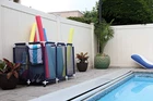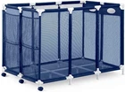 Mesh storage bin allows pool toys to air-dry These mesh storage bins can be assembled without tools Mesh storage bin allows pool toys to air-dry to resist mildew Smartly-designed Pool Storage Bins organize a lot of items without taking up a lot of room Use these mesh storage bins to keep swim goggles, beach balls, floats, and other swim toys and accessories out from underfoot and where you can easily find them. Attractively designed of sturdy white PVC, each Pool Storage Bin has a blue nylon mesh basket that allows items to air-dry quickly. Use the convenient outside pockets to stow small items. Casters (2 locking) allow you to easily roll the mesh storage bins to your garage or shed. The sturdy legs of this mesh storage bin keep the basket off the ground. Bins have reinforced cross bars at the bottom; XX-Large Bin has 3 casters on one end for lift-and-go portability. XX-Large Pool Storage Bin Measures 48"L x 30"D x 34"H
