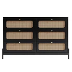 Product Information Main Color: Black Main Material: Rattan Product Dimensions Item Length (in.): 47.00 Item Width (in.): 15.70 Item Height (in.): 30.00 Weight (lbs.): Not Applicable Package Size Length (in.): 50.20 Width (in.): 17.52 Height (in.): 8.82 Weight (lbs.): 88.18 Product Features Attractive Appearance: The eye-catching hue, the unique pull design, and simple construction give this dresser a beautiful and elegant look. Classic rattan drawer design with smooth surface is suitable for any decoration and provides a modern and chic drawer cabinet for your exquisite home. Rattan Craftsmanship:The contrasting trim keeps this dresser fresh, while the rattan weaving drawer and black desktop add a unique design to the unit. At the same time, the vine woven Bohemian style was added. This modern dresser can inject the simple atmosphere of the farmhouse into your space, which is a collision between modern and retro. Multi -function:Suitable for multiple rooms. This black dresser can work in the bedroom, kitchen, living room, or entrance to increase storage space. The modern style is suitable for any decoration. The black grain surface and exquisite rattan woven panel will bring a trace of elegance to the home. STABLE & DURABLE STRUCTURE:The rattan dresser with storage is made of high-grade MDF, metal legs and round metal knobs, which ensure it sturdy and solid. The natural rattan not only has the effect of absorbing moisture and heat but also delivering perfect visual effect, safe and environmentally friendly, which promises a long service life. EASY TO ASSEMBLE:Our cabinet comes with clear instructions that shows illustrations and marked all the spare parts. All kinds of screws are labeled and packed in separate bags, all parts are labeled too. There is board on the back of each rattan drawer, which prevents outside dust coming into. Smoothly painted surface is very easy to clean.
