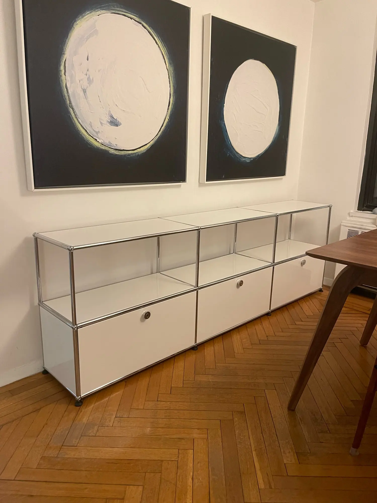 This is a storage and shelving system. The origin of this design is a chrome ball joint with chrome tubes. You can insert metal panels in any color to create endless solutions for both the home and the office. LONG LASTING DURABILITY: These lockers are carefully crafted from high-quality metal materials, so they possess good durability and are able to withstand prolonged use without being easily damaged. Bright colors. A small piece can break the dullness of the space and adjust the overall space atmosphere; available in white, black, green, and blue. You can use it as a kitchen pantry to store condiments, coffee, tea, pottery, etc. It can also be used as an entryway cabinet, great for displaying decorative items, miscellaneous items, etc. It can also be used as a TV stand in the bedroom or an office filing cabinet in the home office. We look forward to unlocking more scenarios for you to use. Even the tall cabinet does not need to be mounted on the wall. It has good stability and will not cause damage to the walls of your home. The structure is relatively simple and will not take up your own storage space, and the available volume is huge to fully meet the storage requirements.
