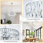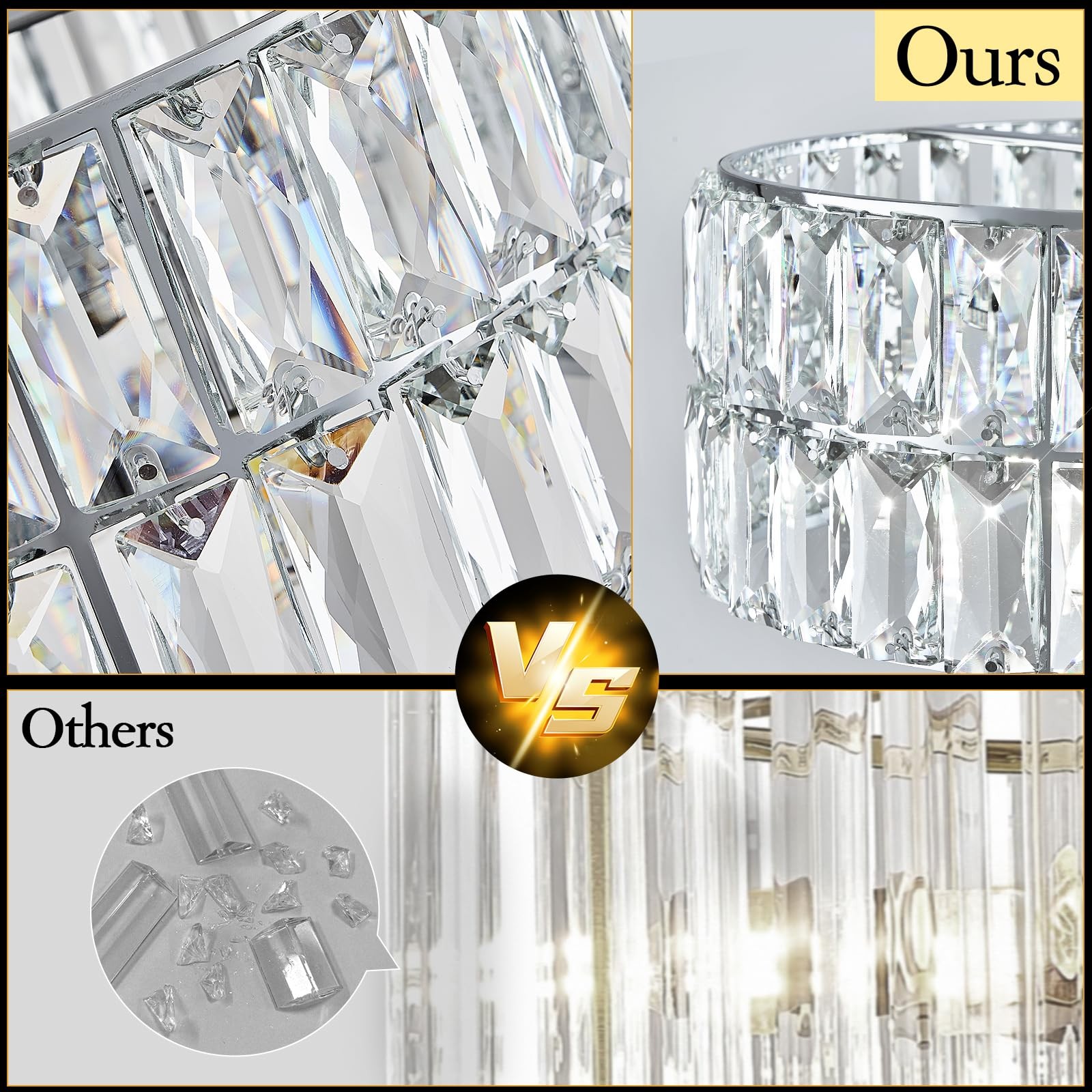 CHROME CRYSTAL CHANDELIER: uses high end K9 crystals prisms and high quality metal frame of this drum crystal chandelier, each crystal reflects the whole light super stunning and creates modern and classic look, enhance luxurious at your home 2-WAY INSTALLATION: you can hang this chandelier light fixture as semi flush mount ceiling by using the rod or pendant light by using the chain, perfectly fit to your high ceiling or lower ceiling, different length of this crystal ceiling will create beautiful lighting effect at your home, it also suitable for sloped ceiling DIMENSION: this round crystal pendant light is D17.7” H6.7”with one rod in 3.93” and adjustable chain max to 59” requires 6 E12 base light bulbs(not included), 40W max for each bulb, compatible with dimmer switch and dimmer light bulbs WIDE APPLICATIONS: this drum shape ceiling light fixture will adapt your various places, easily installation allows you hang this light in dining room kitchen island foyer entryway home office and so on, use different color temperature light bulbs(not included)will gives different ambience at your home CUSTOMER CARE: ETL certification for this modern crystal hanging chandelier, If you have any questions about the chrome crystal light please feel free to contact us CHROME CRYSTAL CHANDELIER: uses high end K9 crystals prisms and high quality metal frame of this drum crystal chandelier, each crystal reflects the whole light super stunning and creates modern and classic look, enhance luxurious at your home 2-WAY INSTALLATION: you can hang this chandelier light fixture as semi flush mount ceiling by using the rod or pendant light by using the chain, perfectly fit to your high ceiling or lower ceiling, different length of this crystal ceiling will create beautiful lighting effect at your home, it also suitable for sloped ceiling DIMENSION: this round crystal pendant light is D17.7” H6.7”with one rod in 3.93” and adjustable chain max to 59” requires 6 E12 base light bulbs(not included), 40W max for each bulb, compatible with dimmer switch and dimmer light bulbs WIDE APPLICATIONS: this drum shape ceiling light fixture will adapt your various places, easily installation allows you hang this light in dining room kitchen island foyer entryway home office and so on, use different color temperature light bulbs(not included)will gives different ambience at your home CUSTOMER CARE: ETL certification for this modern crystal hanging chandelier, If you have any questions about the chrome crystal light please feel free to contact us