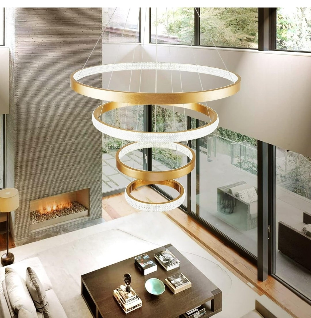 The dimensions for the rings are 31.5",23.7",15.8" and 11.8" respectively. Elevate the ambiance of your living space with this stunning Adayfu Modern Crystal Chandelier Light Fixture. The fixture features four interlocking rings, each measuring 30, 40, 60, and 80cm in diameter, providing a captivating and spacious lighting coverage. The combination of modern style and crystal material adds a touch of elegance to any room. This chandelier is perfect for those who want to make a statement with their lighting. The Brand, Crystal Light, is well-known for their quality products and this Chandelier is no exception. It is a perfect addition to any home décor, whether you are looking to brighten up your living room or add a touch of glamour to your dining area.