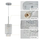 Description Color: Chrome Material: Iron + Crystal Bulb type & quantity: 3*E26 bulbs (The product without bulbs!) Bulb Wattage: Each Bulb Max 60W Applicable voltage: 120V Adjustable: The height can be adjusted Power Supply Mode:Hard-Wired Applicable scenarios: Living room, Dining room, Kitchen, etc Features Elegant Crystal design: The use of high-quality crystal prism design, increase the luxury and brightness of the interior space, make your home environment more elegant and stylish. Three-piece set: Contains three chandeliers suitable for installation in multiple locations such as dining room, kitchen island and living room, providing a consistent aesthetic and ample lighting. Adjustable height: The height of the chandelier can be freely adjusted according to demand to adapt to different ceiling heights and decorative needs to ensure the best lighting effect. Easy installation: With detailed installation instructions and necessary accessories, you can quickly complete the installation without professional knowledge, so that you can easily enjoy the beautiful lighting.