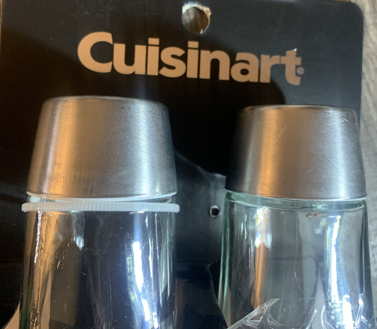 Modern Cuisinart Salt Pepper Glass Kitchen Shakers with Bronze or Stainless Steel Lids Easy to Refill NEW. Condition is New. Shipped with USPS Ground Advantage.