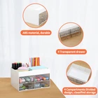 PREMIUM MATERIAL - This Stationery storage box made of environmentally friendly and non-toxic ABS material, which does not cause any harm. It is strong and solid enough for a long time using PRACTICAL and MULTIFUNCTION - This Desktop Storage Box has 3 drawers and 3 divided compartments, 1 top shelf organizer to hold your office desk supplies accessories. Transparent drawers allow you to quickly find what you need. 3 Pen holder keep your items upright, tucked away, and clutter free. PERFECT SIZE - 8.3*5.6*4.8inch/21*14*12cm, it fits easily in the desk. Two small notched supply drawers easy to pull out. Place it without it taking up the too much surface REMOVE CLUTTER - The Desktop Storage help you to organize your desk and save space and time for you. Spend less time to look for where your office workspace accessories played up and more time focusing on other matters. GREAT FOR EVERY DESK – Great for home office organization, school, college, or dorm desktop organizer. Perfect for the new grad, a birthday, Mother's Day or Valentine's Day gift, it truly can be appreciated by one and all