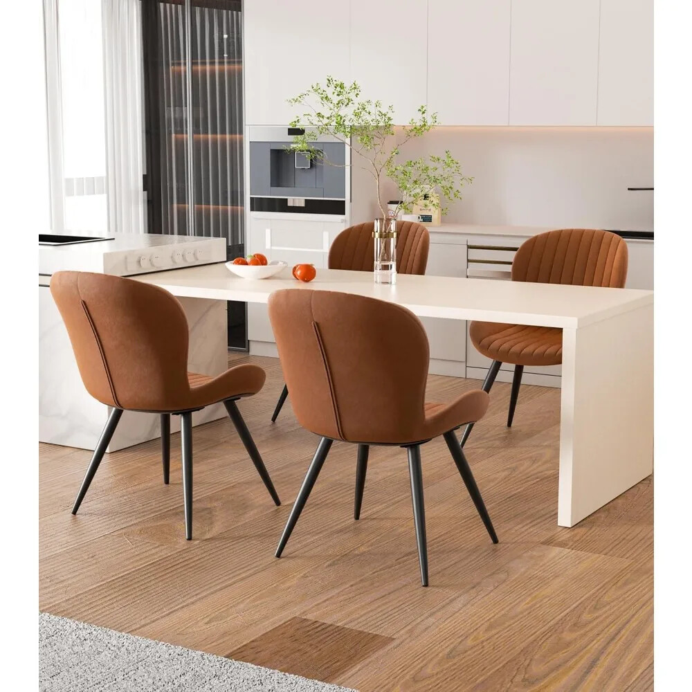 About this item Soft & Breathable Fabric:Experience the ultimate in comfort with our dining chairs, upholstered in high-quality tech cloth. This fabric is not only incredibly soft and breathable but also a breeze to clean. Enjoy a fresh, clean look with minimal effort, perfect for busy households and frequent gatherings. Sturdy Metal Legs: Say goodbye to wobbly chairs and difficult assembly. Our dining chairs are designed with 4 independent metal brackets, offering exceptional stability and support. This thoughtful design ensures that your chairs are sturdy and easy to put together, providing peace of mind and reliability for years to come. Stylish Shell Shape: Add a touch of elegance to your home with our uniquely designed shell-shaped chairs. These striking chairs serve as a stylish centerpiece in any dining room or living space. Their modern design effortlessly complements a variety of décor styles, making them a versatile addition to your home. Ultimate Comfort: Sit back and relax in our chairs that feature a gracefully curved backrest and a wide seat. Designed for maximum comfort, these chairs provide excellent support whether you're dining with family, working from home, or enjoying a quiet moment. Experience the perfect blend of style and comfort with every use.