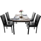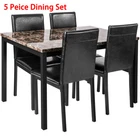 Modern Dining Set Kitchen Room Table Set, Dining Table , 4 Faux Leather Chairs Features: - Sturdy And Durable - Modern And Upscale Furniture - Great Decoration Furniture - Paper Faux Marble Table Top, Smooth And Beautiful with metal legs and apron -4-piece metal frame dining seats: Chairs are upholstered in dark brown bi-cast vinyl (faux leather) - Easy to Assemble, and Assembled in some Minutes. Specifications: TABLE Weight Limit: 100LBS CHAIRS Weight Limit:250LBS Package Includes: 1 x Modern paper Faux Marble End Table 4 x Metal frame dining seats 1 x Manual