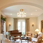 Modern Flower Chandelier Drum Shade Ceiling Light Semi Flush Mount Pendant Lamp About this item 【Stylish & Elegant Design】: Stunning Modern Minimalist ceiling chandelier, Vintage Gold fixture and acrylic parts, sparkling and shiny light effect to created a warm and soft atmosphere. 【Dimensions】: Our modern gold chandeliers made of acrylic and metal. Product overall size is 17.3''(D) x 13.8''(H), Canopy Size is 5.7''(D). Please confirm the size before purchasing. 【Widely Use】: The elegant ceiling chandelier is a perfect fixture for Aisle, Hallway, Bedroom, Living Room, Dining Room, Kitchen, Hotel, Balcony, Stairwells. 【Compatible Bulbs】: Needs 4 E26 LED bulbs (Max 40-watt per bulb,Not Included). This modern chandelier is also compatible with energy saving, halogen bulbs etc. The Gold finished and acrylic shade, When lights are on, it will create a romantic ambiance. 【Quality Assurance】: We use a high-quality metal base and lamp arm to ensure the service life of the product.You don't worry about the deformation of the lamp body and the integrity of the packaging. Payment Delivery details Terms of sales About us Contact us Payment You could make payment via: Delivery details Packages will ship via by UPS or USPS within our handling time,once the package is shipped out ,normally shipping takes about 3-10 working days,but due to different cities and states,shipping time will be different. Terms of sales If you any problem about shipping information, or the item you got : Arrived damaged; Wrong item sent; Missing parts or pieces; Doesn't work or defective; Doesn't match description or photos. Pls click "Contact Seller" and send us message firstly. Then we could have a check and will take responsibility to resolve the problem with you in good communication. About us Our company specializing in selling all kinds of light fixtures,such as ceiling fans,chandeliers,crystal lights,retro lamps,pendant light,etc. If there's any light fixture you are interested,pls feel free to contact us for more details. Contact us Normally your message will be replied in 1 business day,If after 24 hours you do not receive our reply,please kindly re-send us the message,because sometimes ebay message system will have technical problem,so your message can't send to us successfully.