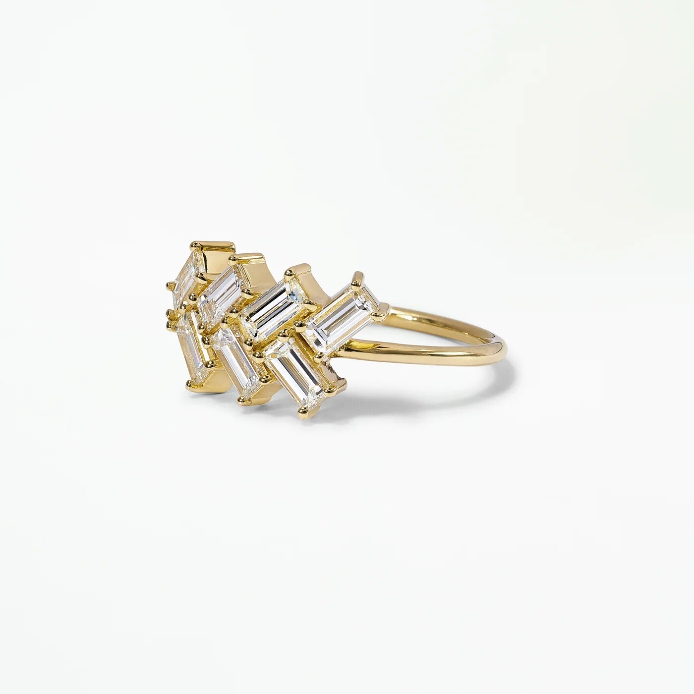 Stunning and contemporary baguette moissanite ring featuring a unique geometric design. This eye-cast and set in a 925 sliver band. The modern design creates a striking visual impact, perfect for those who appreciate distinctive jewelry ELEGANT LOOK! GREAT SHINE! Metal : stamped 925 sterling silver Finish :yellow gold Band Width : 2mm Weight : Approx. 2.5 gms Ring Size: US-7 This ring is handcrafted with utmost care. Would make an ideal gift for someone special. The stone has excellent cut and luster. Comes in attractive packaging. CERTIFICATE OF AUTHENTICITY PROVIDED Shipping : Shipping is by UPS/SPEEDPOST/FEDEX or similar shipping agencies to reach you in 9-12 business days after processing the order. Tracking is provided. Please note: Jewelry items can take up to 10-12 business days to process to take care of ring sizing if any, polishing, finishing, packing and handling, certification, documentation etc. Shipping Charges include eBay fees on Shipping, packaging, certification costs, manpower costs, overheads, taxes etc. in addition to actual courier/postal expenses which have increased substantially as a result of pandemic & global economic conditions. We do not artificially increase the price of the products to include shipping charges but only charge what shipping actually costs us. Combined Shipping: Combined shipping discount is available up to 5 (Five)items in an order to be purchased within 5 days. You can continue to buy- Any additional items above 5 in quantity will be considered a new order. This is to avoid pilferage en-route as well as to ensure that you are happy with the merchandise. Once you have received their items you may buy additional items again. This limit may be revised for repeat and regular customers. Payment: Buyers are requested to pay within 3 (Three) days of purchases. eBay will automatically open unpaid item cases in case payment is not received within this period. The item will also be available for purchase to other buyers till such time that the payment is received. Customs and Taxes: Any customs duties, charges and local taxes are subject to local laws and vary from country to country and hence the payment of any eventual custom duties, charges, levies and taxes etc will be at the buyer's expense. We do not have any control on the same. Returns & Refunds: You can return the item within 14 days of receiving the parcel. - Please return in original packing. Buyers are required to check and ensure that the item/s are in good condition and as per item listing on eBay as no claims for returns and refunds will be entertained thereafter. The returned item should be unused and in original and undamaged condition. Buyer will be required to ensure that the item is sent by trackable shipper. Shipping charges are non-refundable. Refunds are made by PayPal and may take up to 5-7days after receiving back the product/s. Disputes: We aim to settle all disputes amicably. Please do not open any dispute on eBay for dis-satisfaction or for non-receipt or to return an item. We are available through ebay messages system and most messages are replied in a few hours. Personalized satisfaction is of utmost importance to us. Feedback: We always provide excellent feedback to our buyers and expect the same in return with 5-star ratings. In case of any dissatisfaction or any other reason please do contact us before leaving any neutral or negative feedback - we will strive our best to resolve all issues to your satisfaction. Metal: silver is 925 Streling Silver with Nickel Free Rhodium Plating. Please refrain from buying if you have allergic reaction to metals. We will not be responsible for any health problems in this regard. Legal Disclaimer: Refund or any claim liability for the buyer is only limited to the value of the item purchased. No additional claims will be entertained for any other reason whatsoever. Please note that since various labs may have different testing methods and the interpretation of all our Diamonds and Stones may differ from one lab to another as well as from one Gemologist, appraiser and Jeweler to another, we will be unable to accept another Lab Certificate or the judgement of any other third party including any Gemologist, appraiser, Lab, Jeweler etc. By consenting to buy our items it is understood that you have read, understood and agree to the terms and conditions as well as the FAQ for the Diamonds and Jewelry being sold buys. What Guarantee do you offer? We offer full100% Money Back Guaranteed in case of any manufacturing defect. Please also refer to the Refund Policy as mentioned our item listing.