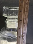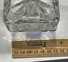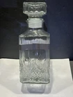 This whiskey decanter is a must-have for any modern man cave or barware collection. With a height of over 9 inches, this clear glass decanter features a square cut design and comes with a lid/stopper. The decanter weighs 1 lb. 11 oz. and is perfect for storing your favorite whiskey or other spirits. The sleek and stylish design of this decanter makes it a great addition to any home or bar. It can be used for special occasions or as a collectible item. The clear glass material adds a touch of sophistication and allows for easy visibility of the contents. Whether you're a whiskey connoisseur or just starting out, this decanter is sure to impress. Has original label. Excellent condition - no chips or cracks or damage.