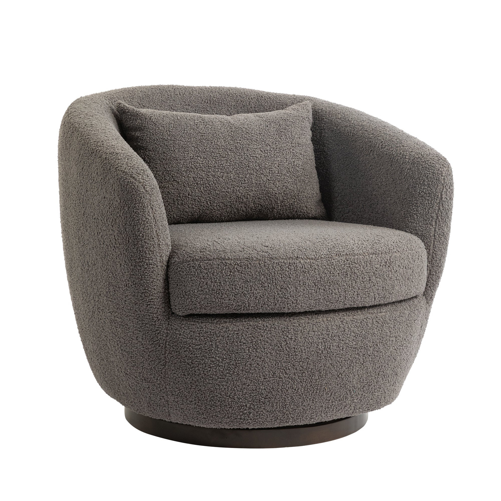 Specifications Place of Origin China Main Color Grey Main Material Upholstered Filler Foam Dangerous Goods #dangerFlag# Dimensions & Weights Assembled Length (in.) 29.72 Assembled Width (in.) 28.34 Assembled Height (in.) 27.95 Weight (lbs) 50.16 Product Features Swivel Function: This swivel barrel chair features a sturdy metal base that rotates smoothly through 360 degrees, while the heavy chair ensures stability and comfort. Weight capacity up to 250 lbs. Hidden Storage Space: The removable seat cushion of swivel storage chair has a storage space which can store toys, books or blankets, saving space and keeping your room tidy. Cozy Chair: Enjoy the luxurious comfort of this chair, meticulously crafted with premium heavy-filled foam cushioning. Its exceptional coziness and support redefine relaxation. Sophisticated Design: The chair boasts a graceful silhouette with sloped arms, merging the classic club armchair look with a contemporary curve, adding elegance to any space. Ideal Choice: Its simple yet elegantly designed round swivel chairs are the perfect combination of luxury and stylish. It will give an instant upgrade to the style of your room. Suitable for balcony, living room, bedroom, beauty salon and other places. Description 360 Degree Rotating The swivel base is made of sturdy metal for smooth, silent rotation Ergonomic Backrest Curved backrest and armrest give you better support Storage Space This swivel storage chair features a removable seat cushion with hidden storage Teddy Fabric Soft and comfortable to the touch, durable and non-pilling