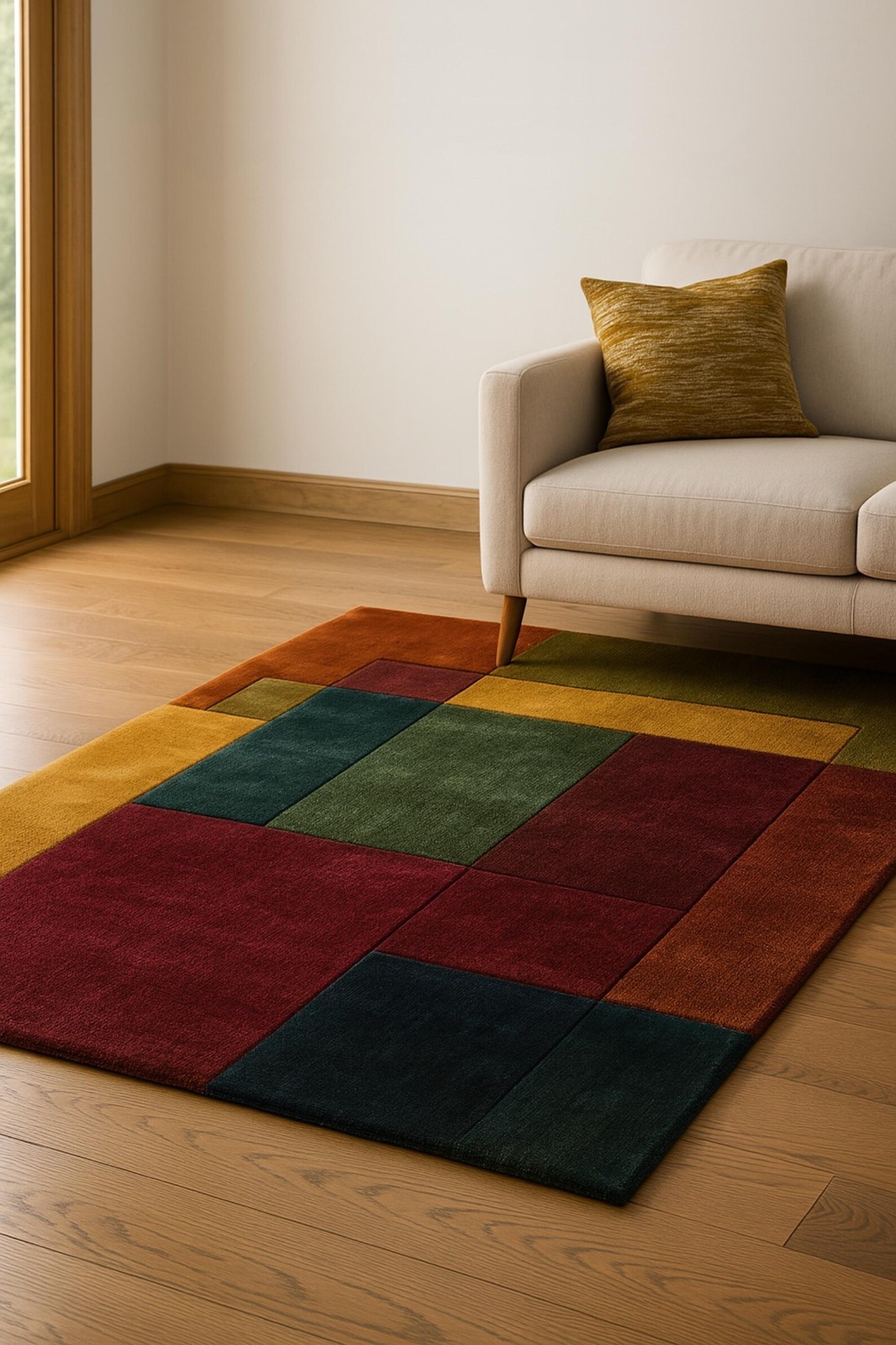We are delighted with this beautiful rug, it is gorgeous, such great quality. The colour is true to the photo and is a lovely kind of moss green. It was very interesting tracking its journey all the way from Uttar Pradesh, which we didn't realise is known as rug town or city. I was worried about the packaging not holding up, but it was triple wrapped and sent via Fed Ex and arrived in perfect condition, other than a couple of rumples, which is to be expected. Well done and thank you!
