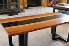 Handmade epoxy Coffee Table. The species that birthed this beauty is exotic Tigerwood. Tigerwood is one of the most radical exotic hardwoods found on the United States market today. It comes from the upland, neotropical forests of South/ Central America. It's base color of a deep amber red with incredible contrasting streaks of deep black make it an out of the ordinary choice for designers looking for something different. The edge profile of the table is a 1/4'' roundover. The legs are steel. The dimensions are: 46''x20''x1'' I'm in Los angeles. Free same day delivery if in los angeles