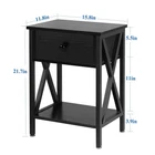 Nightstand: Tough structure with X-design Featuring light weight and compact design Equipped with adjustable feet Suitable for a variety of decoration styles Friendly Customer-Service Specifications: Color:Classic Black Dimension: 15. 8" x 11. 8" x 21. 7" br> Package Includes: 2 x Nightstands 1 x Instruction 1 x Assembly Kit ★ Decorate Your Space with This Industrial Nightstands Set of 2 - The classic wood tabletop and black steel frames complement each other and create the glossy shine of the vintage look. These modern end tables are perfectly placed next to any bed, sofa or recliner. End Tables Dimensions: 11.8"D x 15.8"W x 21.7"H ★ End Tables with Storage Drawer - nightstands set of 2 are designed for one drawer and open storage shelf for placing a lamp, Ipad, small radio, books etc. You can put your precious or private items in the drawer. Making your bedroom and living room tidy and organized. ★ Surdy and Stable Construction: nightstand set of 2 is constructed of high-quality MDF board which is thick and durable enough to strongly support the end itself and stuff inside or on it. Four adjustable metal feet pads keep the end tables balanced on uneven ground and increase its stability. ★ Classic and Practical: This nightstand with drawer can be used as a side table, living room table, end table, bedside table, couch table. Four adjustable foot pads can protect your floor from scratches. ★ Easy Assembly: Detailed instructions and all labeled parts accessories are included. Just follow the easy-to-understand instructions and finish the end table assembly within 15-20 minutes. Clean with a wet cloth.