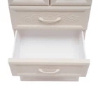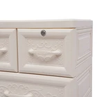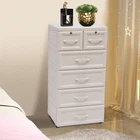 Description This storage cabinet is a versatile and stylish addition to any home. Designed with both functionality and aesthetics in mind, this tall cabinet offers ample storage space for a wide range of items, from clothing and linens to books and decorative objects. The five spacious shelves provide organized and accessible storage, making it an ideal solution for decluttering and maximizing space in your bedroom, living room, or hallway.Details Anti-drop Device: Both sides of the drawer have metal limit pins to prevent the drawer from accidentally falling down and hurting your feet. Soft Handle: The handles fit the shape of your hand and allow you to easily pull it out without worrying about loosing while adding aesthetics. 4 Keys: The top 2 drawers come with a lock and 2 keys each, providing a higher level of privacy for your belongings. Raised&Anti-skid Wheel: The solid&moisture-proof wheel can avoid direct contact with the ground, improve the service life of the cabinet, and allow for stable placement and easy movement. Circular Arc Corners: The corners of the top platform are circular arc-shaped, which can avoid collision and improve the use safety.Specification Color: White Style: Modern Material: PP Shape: Rectangular Process: Injection Molding Mounting Type: Floor Mount Number of Doors: 1 Number of Drawers: 5 Number of Tiers: 5 Load Capacity: About 30kg/66.14lbs Overall Size: 49.78*34.79*101.85cm/19.6*13.7*40.1inch Gross Weight: 8kg/17.64lbs Net Weight: 7kg/15.43lbs Package Size: 42*50*52cm/16.54*19.69*20.47inchPackage Included 1* Storage Cabinet 4* Keys All Accessories for AssemblyNotes Please allow the slight color difference caused by the shooting light and 1-3cm error due to manual measurement, and make sure you do not mind before you order.Application This item can be used in bedrooms, living rooms, studies, powder rooms, beauty stores, etc. for neatly storing books, office supplies, snacks, household items, etc.Build to Last: This storage cabinet is made of high-end PP with an injection molding process, making it can resist wear, shock, water, and deformation, and it is odorless for safe use.Ample Storage Space: The top layer with a suitable height(35.4in) is the home for keys, bags or your favorite photos to offer warmth and personalized decoration as well as facilitate access. 5 well-sealed drawers can hold many personal items and prevent dust.Highly Sealed: The storage cabinet is seamlessly integrated, which can effectively prevent mold and insects and provide protection for clothes, books, and other items all the time.Strong Bearing Capacity: High-end material is hard, durable, and not easy to deform, and together with the crafted rectangular structure, it is not easy to wobble or creak, ensuring the load-bearing capacity of about 66.14lbs.Organized Lifestyle: This cabinet cleverly integrates storage into life, placing it at the doorway or living room to store your messy items, making it pleasing to the eyes as soon as you open the door, bringing you an organized lifestyle.Great Home Decor: The classic white color and carved designallow this storage cabinet to match various room decoration styles, giving your house a new look and adding charm to your room.Small Footprint: It is only 19.6*13.7inch large and can make full use of the vertical space to be placed in small corners of living rooms, bedrooms, and bathrooms without taking up too much space, large and small homes can be applied.Easy to Clean: The smooth surface allows you to easily clean it, you only need a wet cloth to wipe it gently to make it looks like a new one.Easy to Assemble: Simple structure and complete accessories can help you complete the installation easily and quickly. You can also enjoy assembling with your family!Ideal Gift: This storage cabinet has a unique design with a beautiful appearance and a large capacity with practical features. It is an ideal housewarming gift for your friends.