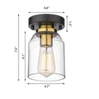 【INDUSTRIAL & FARMHOUSE】: Featuring an industrial design, this close to ceiling light fixture is made of metal construction with clear glass shade in a black and gold finish, create a vintage look in your house. 【EASY INSTALLATION】: Hard wired. This industrial ceiling light includes all mounting hardware for quick and easy installation. 【ETL LISTED & 】: ETL listed for your safety. This flush mount ceiling light is backed by a 1-year manufacturer's . Ideal for hallway, entryway, kitchen, bedroom, bathroom, dining room, living room, corridor, foyer, storage room, restaurant, cafe and bar. 【BULB REQUIREMENTS】: Requires 1 x E26 base 60W bulb (incandescent, LED, or CFL). Bulb sold separately. 【7/24 QUALITY SERVICE】: We provide a 30-day money-back for any reason. If you have any quality or skill problems like glass shade broken/parts/installation problems, just feel free to us for easy and fast .