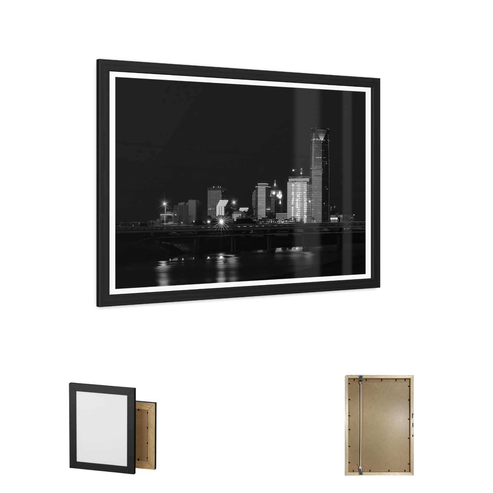 "Skyline Noir" – Coastal Cityscape Illustration Elevate your space with the captivating allure of the urban night in " Skyline Noir" , an architectural cityscape illustration by Hypnotik Creations . This modern, oversized, features a mesmerizing skyline and a grand bridge illuminated against the night , seamlessly blending into a deep black background that enhances the depth and vibrancy of the city’s glow. The sleek, contemporary design effortlessly merges coastal beauty with urban sophistication , making it a statement piece for any modern interior . Premium Print Quality for Striking Detail Crafted for maximum visual impact , this artwork is printed in high-definition HDR on 250 gsm matte Master's Edition museum-quality photo paper , ensuring exceptional clarity, rich contrast, and crisp, true-to-life colors . Utilizing Misaki UV inks and state-of-the-art printing techniques , the image delivers deep blacks, luminous highlights, and a refined, professional-grade finish . Expertly Crafted, Elegant Framing Wrapped in a hand-crafted black wooden frame , made from durable pine wood with a semi-wide, smooth finish for a sleek, gallery-style presentation . Features a clear Perspex (Plexiglas) insert cover , which is shatterproof, scratch-resistant, and lightweight , offering museum-level protection and longevity . A thin white outline elegantly contrasts against the black background , ensuring it complements both light and dark-colored walls . Sustainably Made & Ready to Hang Eco-friendly craftsmanship : Made in the UK from sustainably sourced and recycled materials . Arrives ready to display , with an enclosed back and hanging kit included , making installation hassle-free . If dust accumulates, simply wipe it clean with a dry, soft cloth to maintain its pristine appearance. A Bold Statement for Modern Spaces Perfect for city lovers, architecture enthusiasts, and modern art collectors , Skyline Noir is an eye-catching centerpiece for living rooms, offices, lofts, or contemporary home décor . Whether displayed as a standalone focal point or part of a curated gallery wall , this print commands attention and elevates any space with its refined urban energy . 🔹 Available Sizes: 30x20, 36x24 & 48x32. 🔹 Frame Finish: Black Pine Wood with Thin White Outline 🔹 Ships Ready to Hang – No Assembly Required Transform your walls with the dynamic energy of the city—order Skyline Noir today!