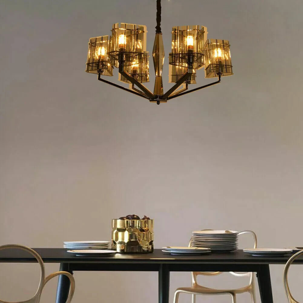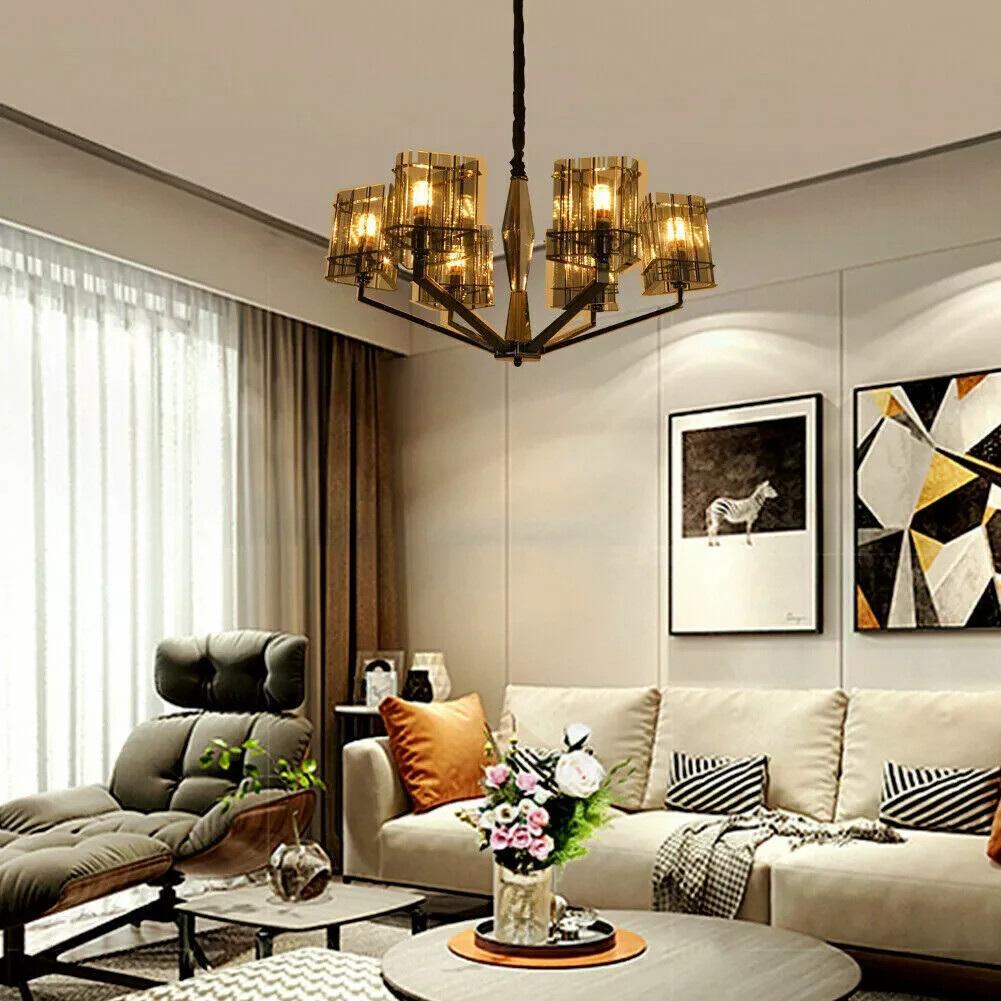 Modern Smoky Gray Glass Chandelier 6-Light Ceiling Light Pendant Lamps Fixtures Introduction: This is an avantgarde chandelier. It is inspired by the branch chandelier and incorporated with modern style. Its high-end quality, exquisite workmanship and chic design will fill your room with a sense of modern and contemporary It is very suitable for families using, home decoration, bedrooms, living rooms, Kitchen island, lobby and restaurants. Specifications: Model: Contemporary chandelier Product Size: Length: 30 ", Width: 30inch, Height: 16". Materials: Metal + K9 Crystal + Glass Color of glass: Smoky gray Number of Lights: 6 pcs Voltage: 110V Bulb: E12 bulbs (Not included) Finish color: Nickle Weight: 10kg Mount:Hanging mount Package included: 1 X Chandelier, 1 X Adjustable rope, 6 Sets glass shade Assembly: This light will need basic assembly skill, professional would be highly recommend. Warranty: If you received damaged or unqualified product, please kindly contact our customer service, we will handle your problems immediately! We're dedicating your 100% satisfaction!
