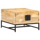Add a rustic style to your existing interior with this trendy solid mango wood coffee table. Solid mango wood is a tropical hardwood. It has the strength to bear the weight, and also stands the wear and tear of time. Additionally, the exquisite craftsmanship and beautiful wood grains make every piece of couch tables slightly different from the next. The side table is equipped with 1 large compartment, providing ample space to keep any items you'd like well organized. What's more, the powder-coated iron base adds to its sturdiness. Important note: The colors vary from piece to piece, making each wooden living room table unique. Material: Solid mango wood with a natural finish, iron with black powder coating finish Dimensions: 26.4" x 26.4" x 17.7" (W x D x H) Assembly required: Yes Shipping Restrictions Due to the limited access of our couriers, this item cannot be delivered to the following locations: Alaska Federated States of Micronesia Guam Hawaii Marshall Islands Military Posts (APO / FPO) Palau Puerto Rico US PO BOX Virgin Islands Our customer support will contact buyers for orders with no shipment service, and these orders will be cancelled and fully refunded afterwards.