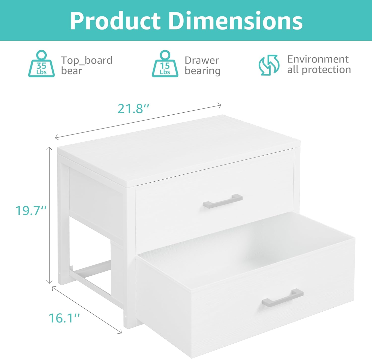 Store New Arrivals Add to Favorite View Feedback Contact Stackable Closet Drawers for Clothes Organizers and Storage Fabric White 2 Drawer Dresser for Bedroom 2 Packs Modern Description Item model number Closet Drawers Set of 2 Warranty Type Extended Material Engineered Wood, Metal, Fabric Finish Type Painted Batteries Included? No Number of Pieces 1 Room Type Dressing Room, Bedroom, Home Office, Nursery Finish Painted Assembly Required Yes Number of Drawers 2 Style Modern Model Name Closet Drawers Set of 2 Item Package Quantity 1 Drawer Type Side Mount Batteries Required? No Item Weight 27 pounds Special Features Lightweight, Adjustable Feet Special Feature Lightweight, Adjustable Feet Part Number Closet Drawers Set of 2 Mounting Type Floor Mount Color White Furniture Finish painted Shape Rectangular Included Components Assemble Tool, Instruction Manual Product Dimensions 16.1"D x 21.8"W x 19.7"H Product Care Instructions Wipe with Dry Cloth Size L(16.1"D x 21.8"W x 19.7"H) Stackable Storage Drawers: These storage containers are stackable, vertical storage will save a lot of space,just use the rubber pads which coming with the box Fabric Drawer: With 2 large folding fabric drawers,each drawer support to 13 lbs,top support to 35lbs Perfect Size to Closet: Overall dimension: 16.1"D x 21.8"W x 19.7"H drawers super easy to slide in and out Get Away From Heavy Bulky Furniture : Wood top board and metal frame, lightweight and easy assemble if you are headache with wood furniture Nice for Home Storage: This 2 drawer dresser can be used as bedside table,arts and crafts organizer storage bins , office storage and so on. Simple and modish design matches perfectly with any furnishing style Product Description The video showcases the product in use. The video guides you through product setup. The video compares multiple products. The video shows the product being unpacked. hero-video Merchant Video White dresser with 8 drawers TV stand Dresser for 50'' TV Dresser with Mirror White Nightstand Set of 2 ABOUT US We’re committed to offering great deals on quality products you can trust. From home décor and garden essentials to tools, hardware, and pet accessories, there’s something for everyone at prices you’ll love. SHIPPING Orders ship directly from the USA for fast and reliable delivery. Most items ship within 1 business day and include free shipping to the lower 48 states. International orders are fulfilled through eBay’s Global Shipping Program. Simply proceed to checkout to view shipping costs, duties, and taxes for your country. FREE RETURNS We offer a 30-day return policy on items you are not completely satisfied with. You may choose a full refund or an exchange.. CUSTOMER SATISFACTION We do everything we can to ensure every customer is fully satisfied. If something is not right, send us a message and we will take care of it quickly.