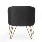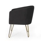 Specifications Place of Origin #originPlace# Main Color Black Main Material Velvet Dangerous Goods #dangerFlag# Dimensions & Weights Assembled Length (in.) 27.50 Assembled Width (in.) 24.50 Assembled Height (in.) 31.00 Weight (lbs) 18.74 Product Features Surround your living room space with seating that offers luxurious comfort. This classy club chair is the ideal addition to any interior space with its modern glam design and elegant elements such as sleek hairpin legs and graceful tub seating. Featuring smooth velvet upholstery, this chair stands as a streamlined statement piece that can change the whole flow of your living room, creating an open, clean space. Finished with deep jewel-like colors, our club chair provides an elegant touch to any room. It's also filled with foam to give you the right amount of support during happy hour, or while you watch your favorite movie. Description