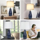 Modern Table Lamps, 25" Ceramic Bedside Lamps Blue Decor Lamp for Living Room End Table Lamp Tall Nightstand Lamps for Bedrooms |3-Way Dimmable Farmhouse Desk Lamps for Home Office Reading, Navy Blue Contemporary & Minimalist Design: rhombus-shaped table lamps for living room will elevate the atmosphere of your space, expertly crafted to complement any decor style. Perfect for adorning your nightstand or end table, this blue ceramic lamp will bring a touch of elegance to your bedroom or living room. (Note: The KD lampshade needs to be assembled Sturdy Ceramic Lamp Base: Standing 25" high with a 5" wide base, the entire beside lamp body is thick and stable, minimizing the risk of being knocked over. The non-slip pad on the bottom further enhances its stability 3-Way Dimmable Table Lamp: There is a rotary on/off switch on the bulb base of the navy blue ceramic lamp for living room, every clockwise rotation of the switch to turn it on and off, the brightness will change once (Low-Off-Medium-Off-High) Blue Table lamps Includes LED Bulb: Our navy blue table lamp for bedside comes with an E26 bulb, saving you the hassle of finding compatible bulbs. The 3000K 6W LED bulb emits a stable, soft warm light and has a lifespan of over 25,000 hours. It offers no flicker, no glare, and smooth lighting, making it suitable for reading, work, and study as a reading lamp, effectively protecting your eyes Purchase Protection: The ceramic bedside lamp is backed by a 2- After-sale Services. For any inquiries about this bedroom ceramic table lamp, please don't hesitate to reach out to us via the message box at your convenience