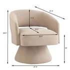 Specifications Place of Origin China Main Color taupe Main Material Velvet Filler Foam Product Style American Design,Contemporary,Luxury,Mid-Century Modern,Modern Use Case Primary Living Space Dangerous Goods #dangerFlag# Dimensions & Weights Assembled Length (in.) 27.50 Assembled Width (in.) 27.50 Assembled Height (in.) 29.50 Weight (lbs) 34.00 Product Features Appearance: Graceful silhouette with sloped arms, An amazing chair for any room in your home, such as living room, bedroom or office. Construction: 360 degree swivel base features tasteful wood accent base detail, the armchair is with upholstered seat and curve backrest ,allows great flexibility in your space. Product Size: 27.5'x27.5'x29.5' Seat width :22.5' Seat depth: 22.5' Seat Height: 18” Material: Solid wood +Velvet+Foam Assembly: Tools is included for easy assembly. Description Modern Swivel Accent Chair Modern Design: The modern swivel chair features a sleek and contemporary design, incorporating clean lines and a minimalist aesthetic to complement various interior styles. Ergonomic Comfort: This chair is designed with ergonomic considerations, providing ample support for the back and arms , ensuring a comfortable seating experience for extended periods. Versatile Functionality: Whether used in a home office, living room, or study, this chair's versatile functionality makes it a stylish and practical seating solution for various settings. 360-Degree Swivel With its 360-degree swivel capability, this lounge chair provides users with the freedom to effortlessly rotate and engage with their surroundings, enhancing convenience and accessibility. The chair's design prioritizes comfort and relaxation, with a focus on providing a supportive yet comfortable seating experience, encouraging rest and leisure.